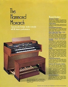 In 1975 startte Hammond met de Monarch-series. Het moest een redelijk betaalbaar elektronisch orgel worden maar toch met 2 x 5-octaaf en vol-pedaal. Eigenlijk is dit de volpedaal versie van de 8122, zij het met "normale" drawbars voor het onderklavier en niet de minder gewaardeerde groene en gele zaagtand drawbars.