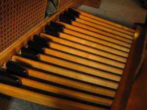 16262 Institutional walnut 1976- USA Kerk-model,andere registers,klep,geen ritme