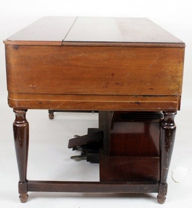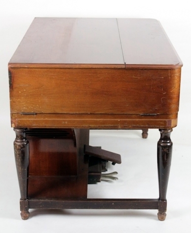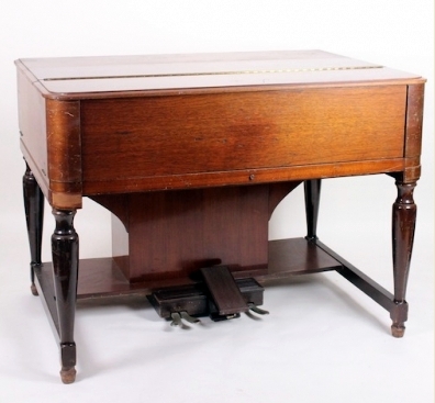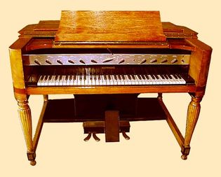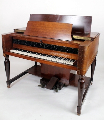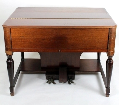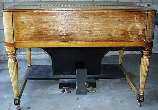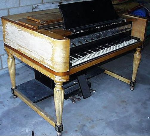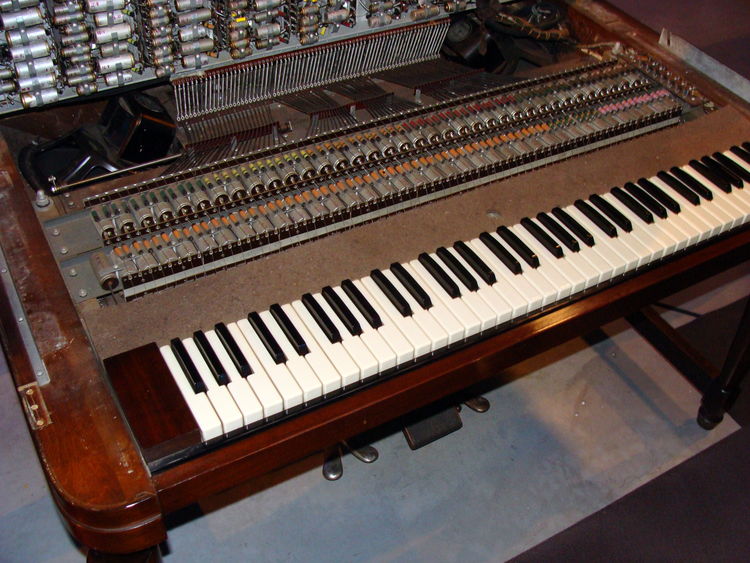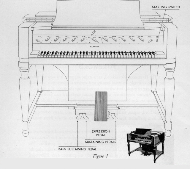 De meest linkse laat , net als vroegere piano's alleen het linker-deel van de Novachord doorklinken,ook duidelijk is het zwelpedaal te zien: