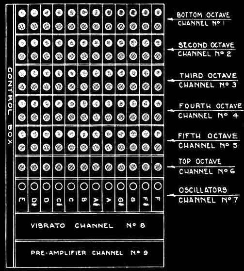 Het was dus eigenlijk de eerste polyfone synthesizer ter wereld. Vergeet daarbij niet, dat deze truc pas 30 jaar later weer nieuw leven ingeblazen werd door Moog en Arp. De Novachord had al een vorm van ADSR, pedaal sustain en een drie traps band pass filter en een 6-kanaals vibrato unit.