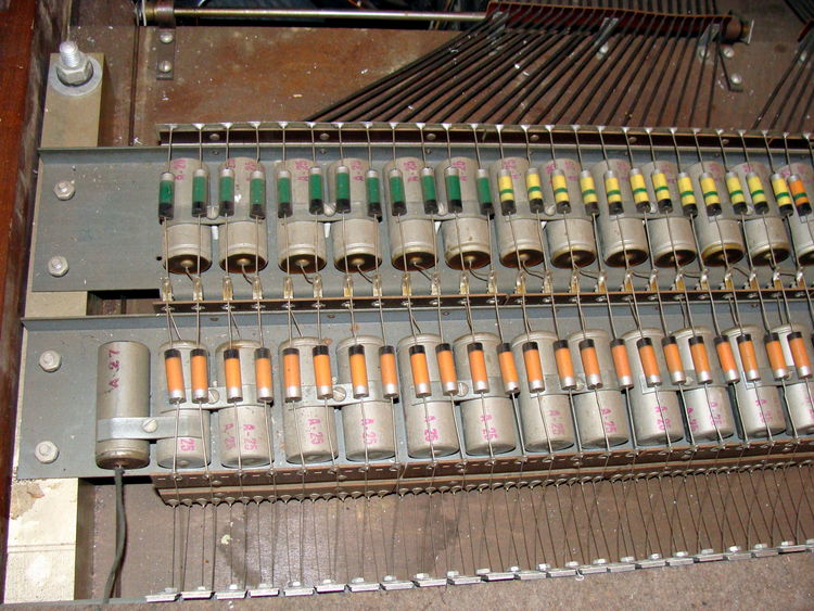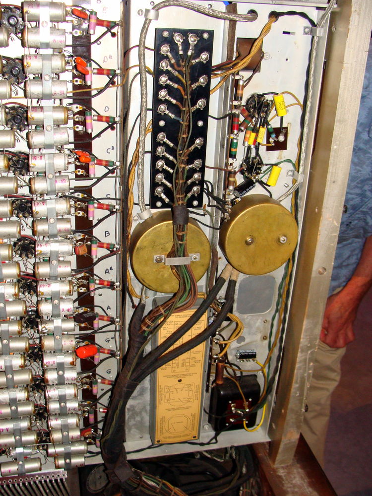 Hieronder: de elektronika die het toetsenbord verbindt met de generatoren.