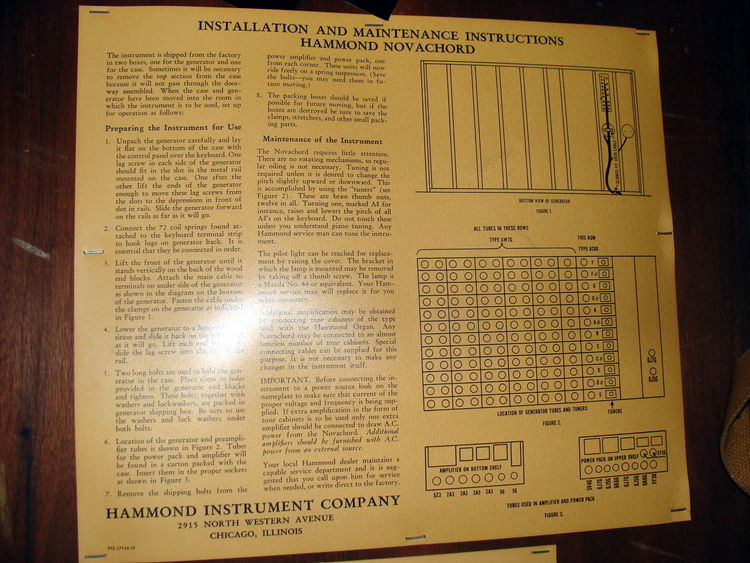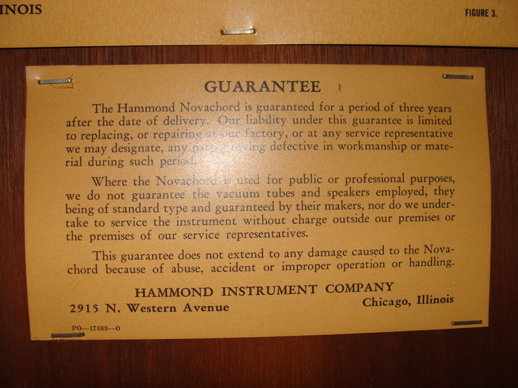 Ook bevond zich hier de garantie voorwaarden.( 3 jaar op de Novachord, niet op de buizen):