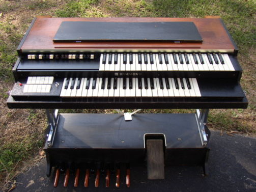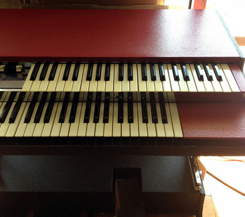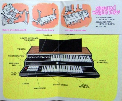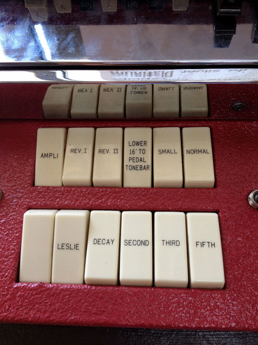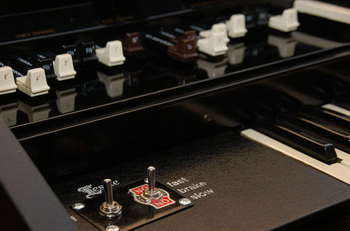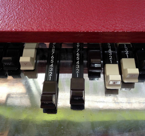 9 drawbars voor boven, 7 voor onder, 1 voor pedaal