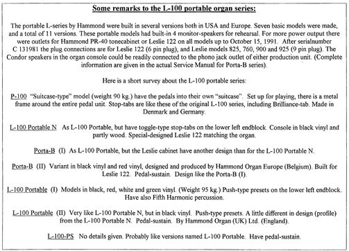 In Nederland werd de Porta B verkocht onder de naam L-100-PN(S) S, uitsluitend voor versies met Pedaal Sustain.