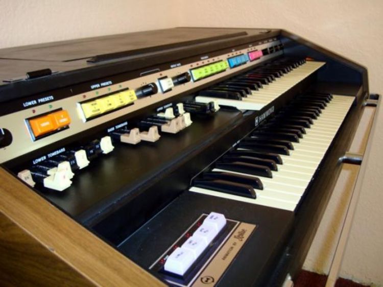 Strings waren er nog niet: die kwamen pas op de opvolger nl. de B-300, waar tevens alle pasteltinten waren vervangen door zwart en wit en een enkele grijstint. Keyclick en Reverb (ook via de Leslie rotors) waren regelbaar met draaiknoppen. Als Leslie werd de 822 aanbevolen (dan wel de 815) die, althans voor die tijd, een lekker groot vermogen en een volume en toon regeling aan boord had.