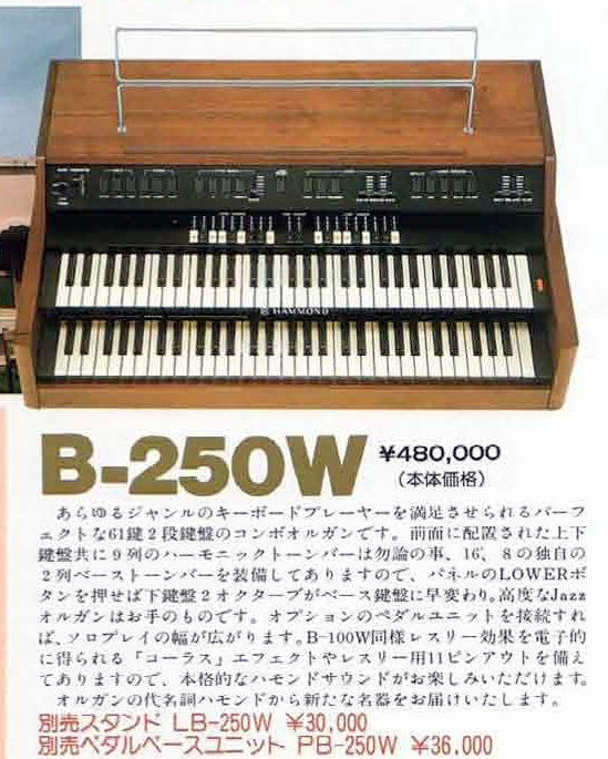 Puur voor de Japanse markt bouwde NIHON-HAMMOND een houten versie, die aangeduid werd als B-250W. Dit model is uiterst zeldzaam.