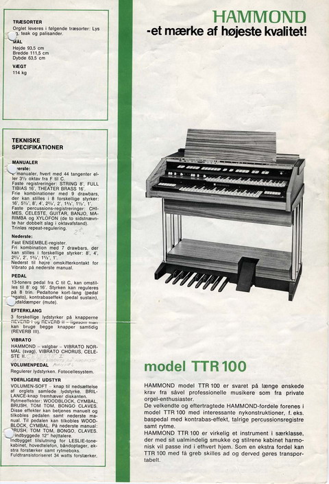 De TTR 100 is een design variant op de T serie en had ook op het rechter bakstuk knoppen, die elk een van de 6 drumgeluiden lieten horen. Deze effecten konden ook aan het onderklavier en het pedaal gekoppeld worden.