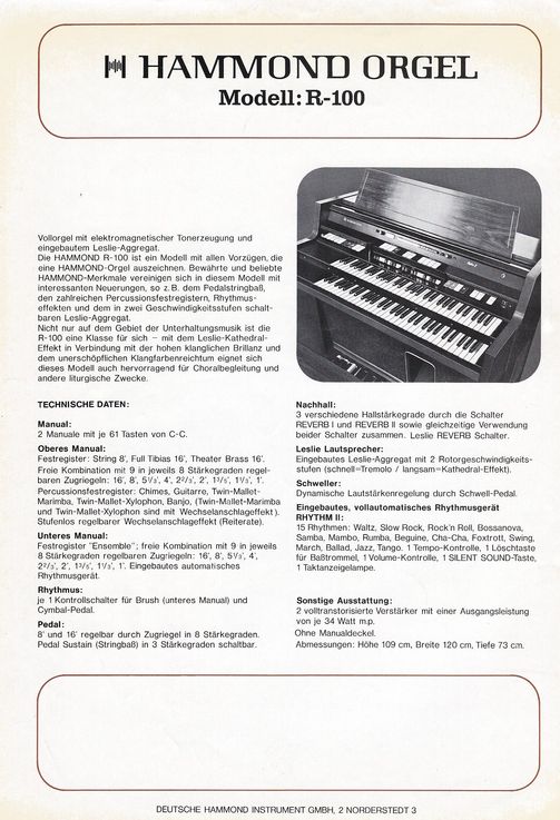 Toendertijd was de R serie een zeer compleet Hammond orgel met zaken als een ingebouwde Leslie, sustain op het pedaal en een Hammond II Rhythm drum machine.