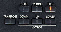Manual Bass, Split (SK1 only), Lower to Pedal (SK2 only) Octave Up, Octave Down, Lower, Transpose