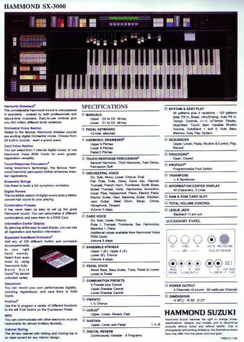 In 1996 werd de CX/SX3000E geïntroduceerd welke hoofdzakelijk veranderingen in meubel uitvoering inhield, zoals afsluitbaar deksel, muzieklessenaar verlichting en