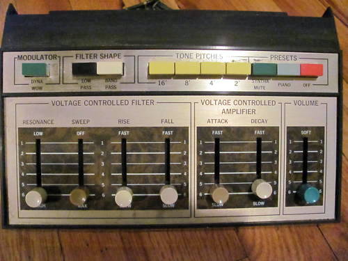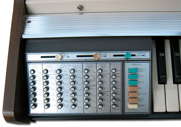 The two things that make this synth very cool indeed are its rarity (around 200 were made and most of them were probably junked years ago) and the patch matrix that allows even a simple organist to get some pretty synth-like sounds by selecting buttons alongside a graphic of what the button does to the sound.