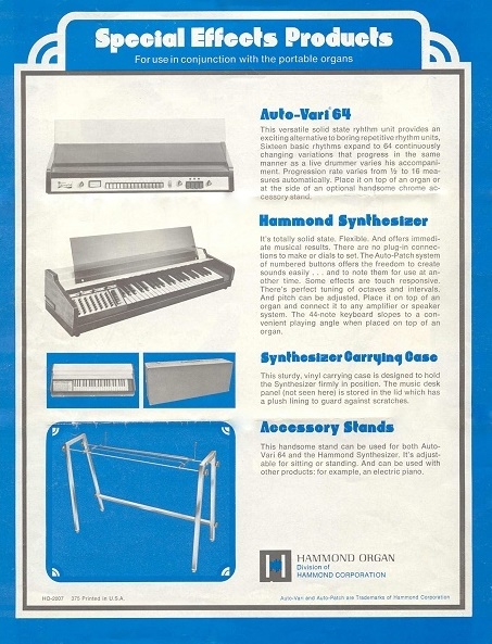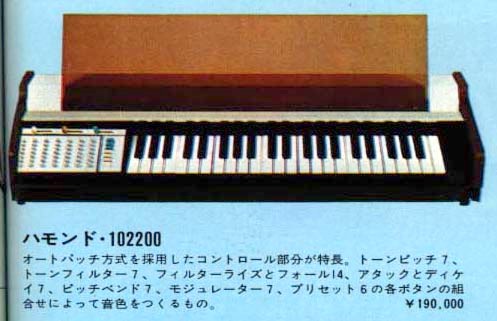 Around 1974-1975 Hammond Japan released the 102200 Preset Synth - a single oscillator keyboard that was intended to complement (or sit on top of) your Hammond Organ or Piano. It is in the same league as the Pro-Soloist from Arp, the Satellite from Moog and the SH-1000 from Roland.
