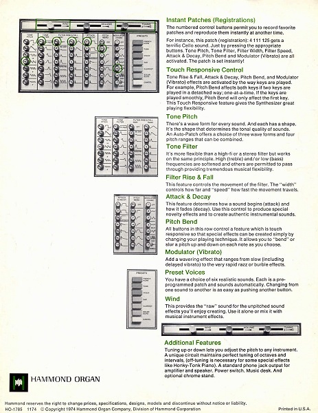 De Hammond Synthesizer was qua klank absoluut geen uitblinker, maar de bediening was zéér intuitief, dus niet héél moeilijk te begrijpen. Helaas werd het niet het beoogde succes, dat men had verwacht.