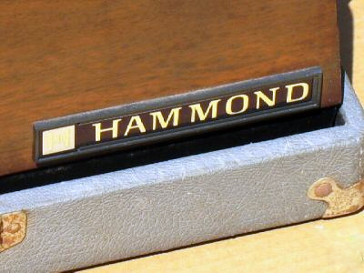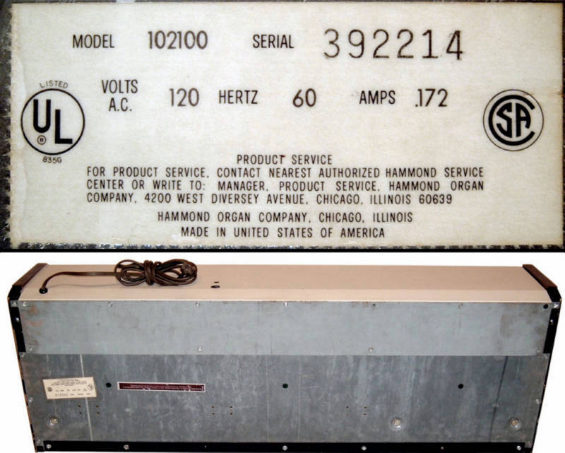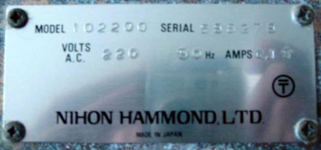 Serienummerplaatje en onderzijde van de Hammond synthesizer