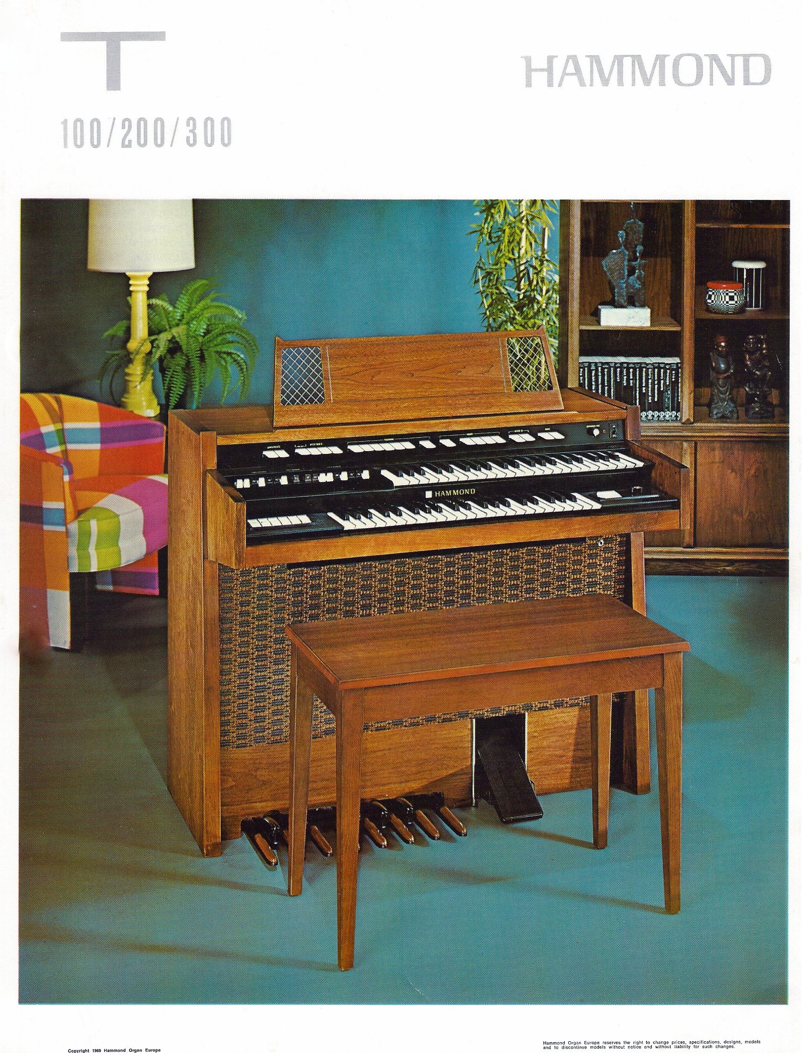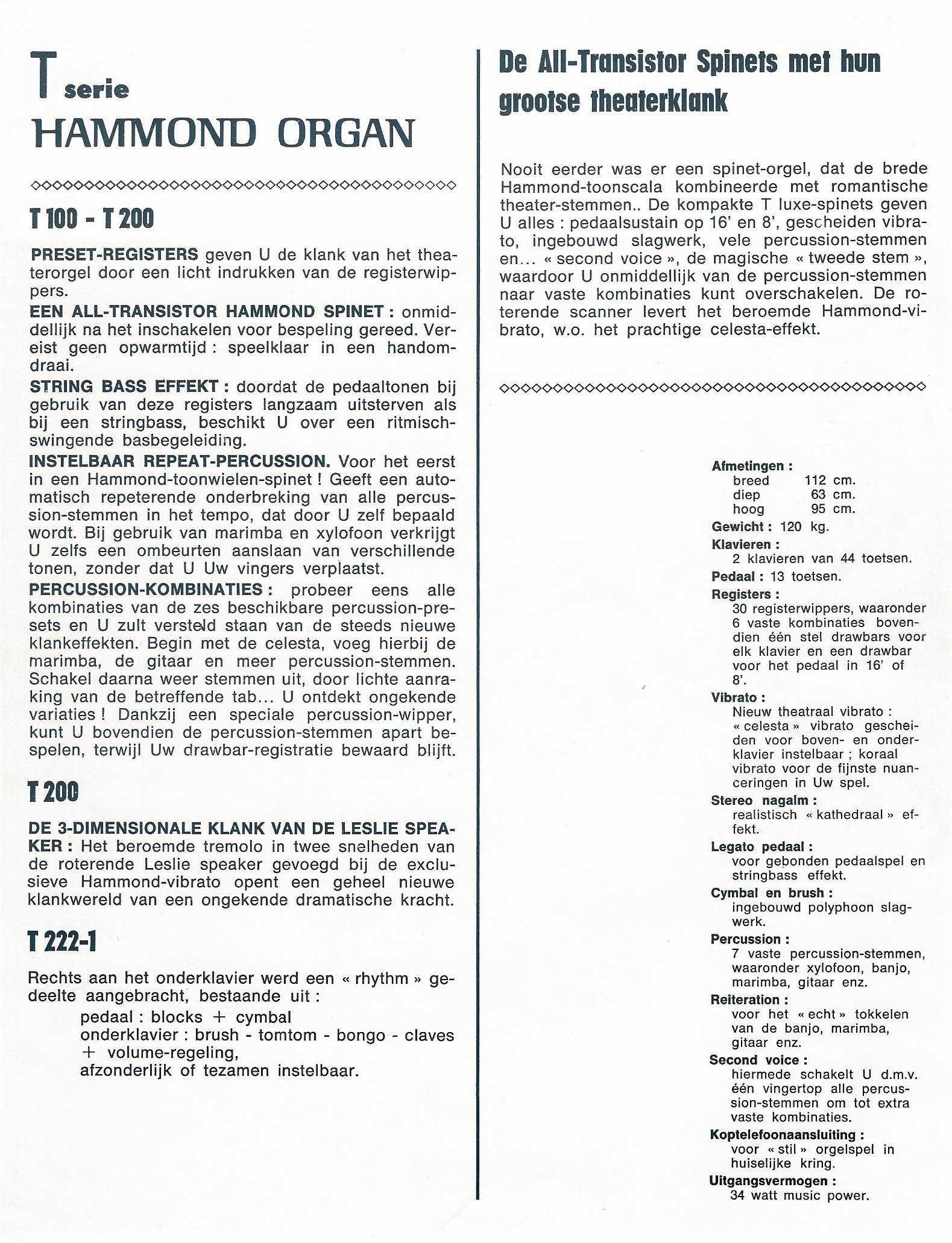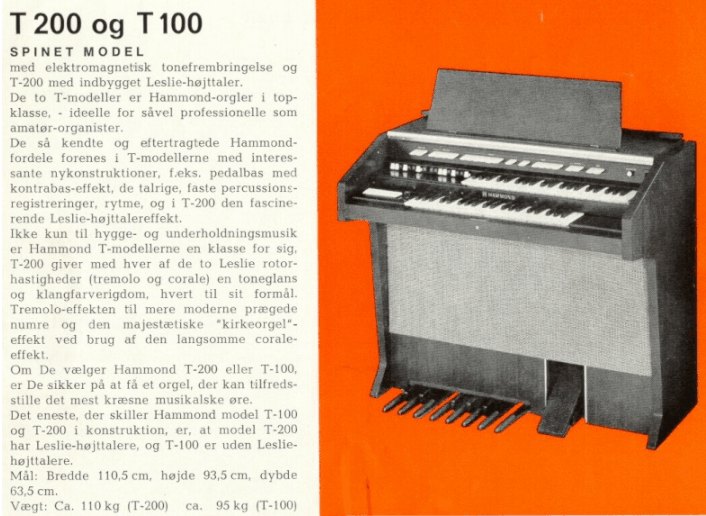 T-200 Institutional,met klep,1968,Walnut en Teak soorten, Duitsland en Denemarken  hetzelfde als de T-100  series, maar dan met ingeb. Leslie meeste gebouwd in Hamburg.