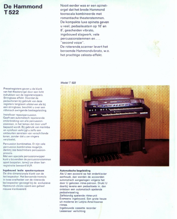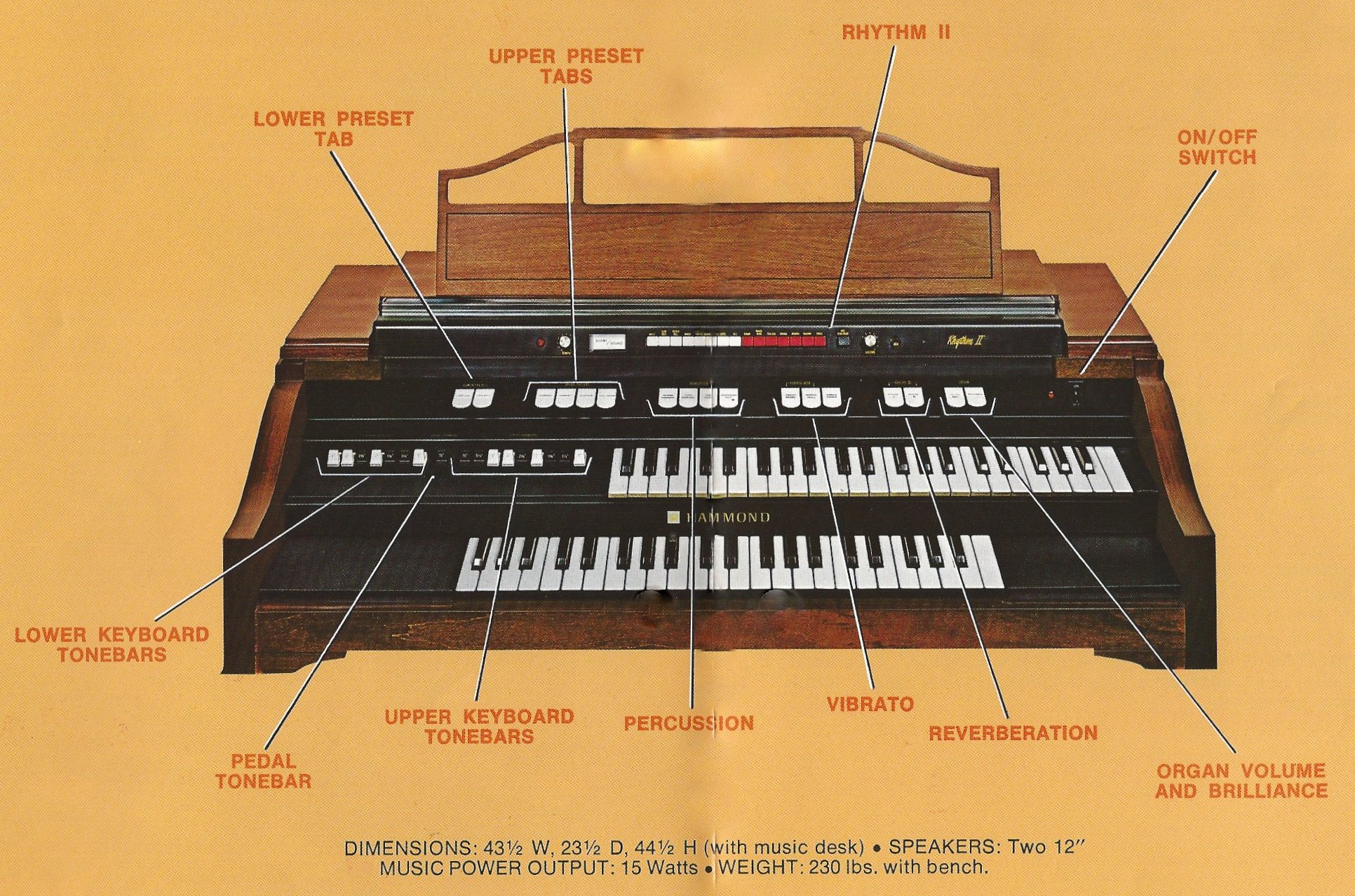 Het Hammond onderbouw ritme had 10 voices en een auto-functie begeleiding (gekoppeld aan het onder klavier.)  |