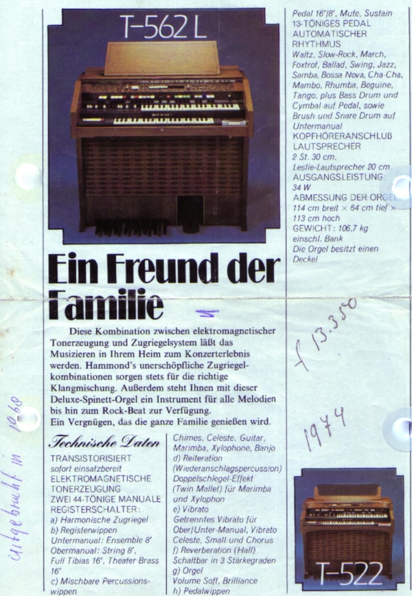 TR-200 In Denemarken, Duitsland,België en zelfs in HOLLAND(?!) ,Institutional,1969, Walnut,Teak, en Palisander, Met klavierdeksel, lees hier meer