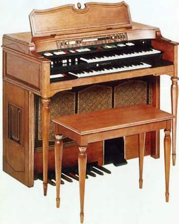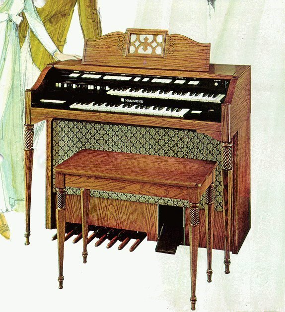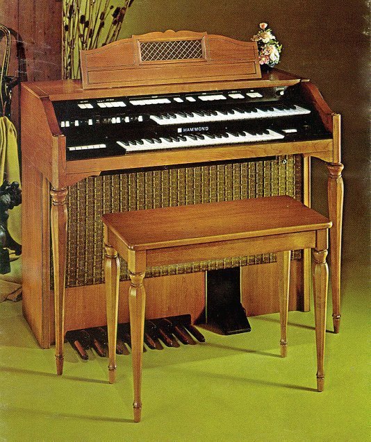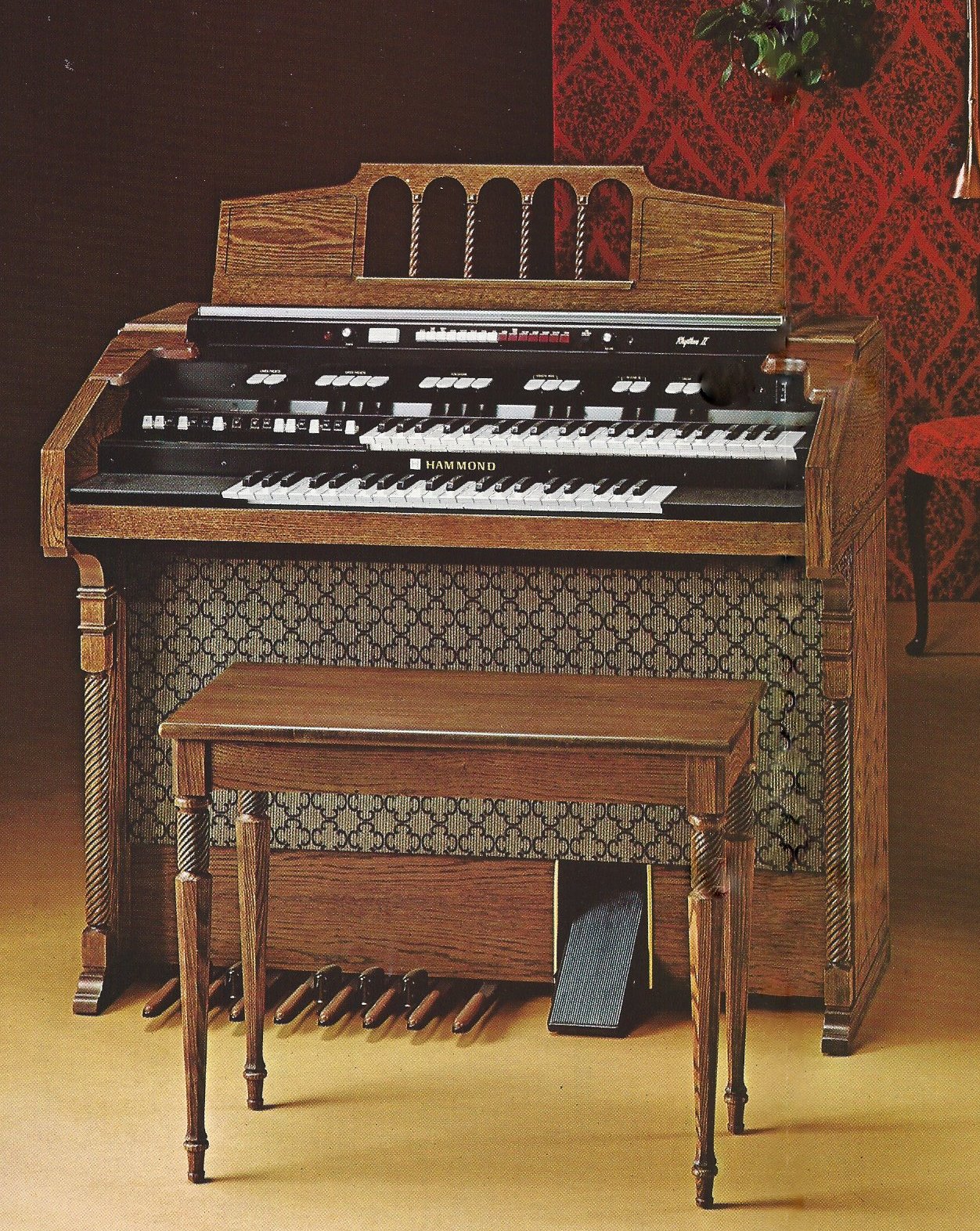 Grote verandering voor het ontwerp: veel circuits. Nieuwe functies oa. Hammond Rhythm III drummachine, gekleurde tabs, 'Leslie Chorus' effect en split vibrato. Kon worden besteld met een ingebouwd cassettedeck.(C)  |