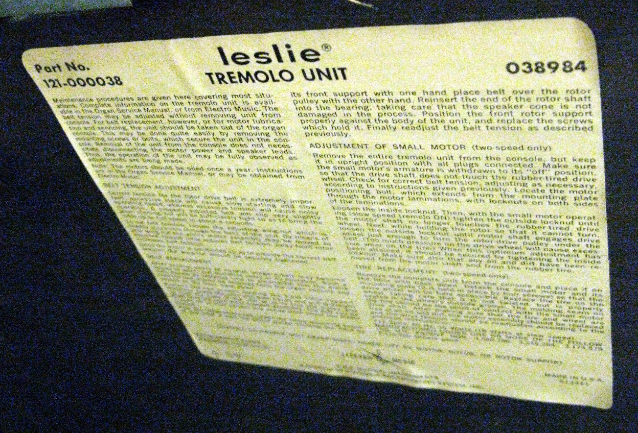 Zoals hierboven, maar nu met ingebouwde Leslie  |