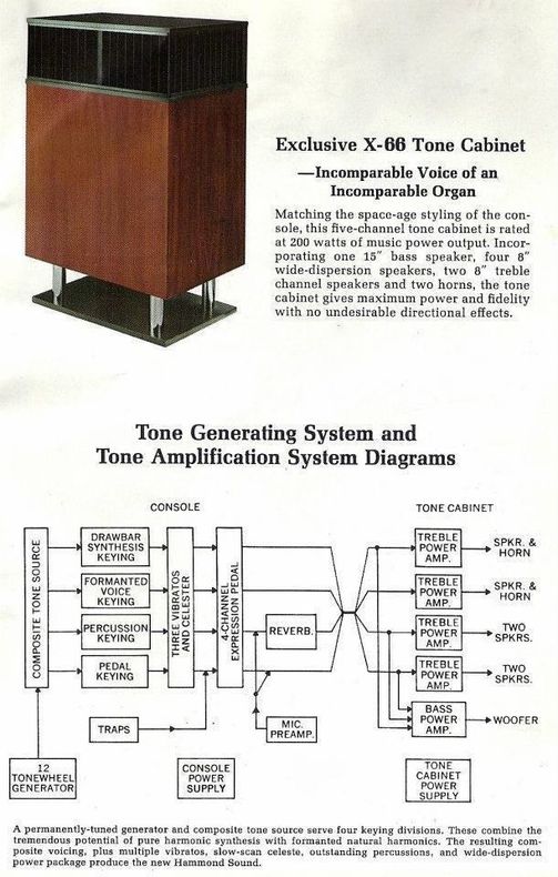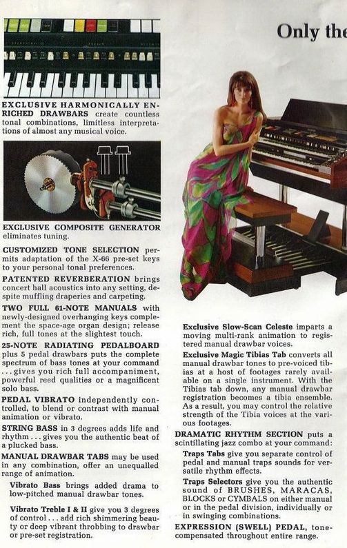 Model X-66 tonewheel (12 toonwielen ttl). Top of the line model, dat wat betreft muzikaliteit, presentatie en toegepaste techniek zijn tijd vér vooruit was.