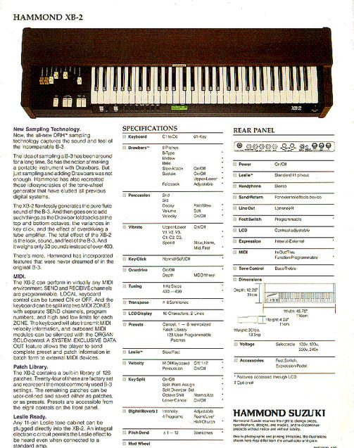 These tonal nuances were successfully captured in a digitally based keyboard, the Hammond XB-2.