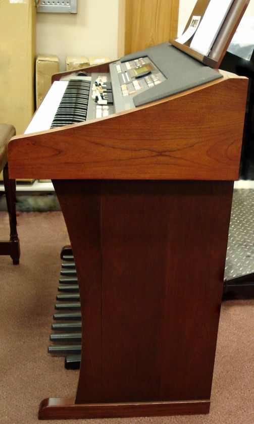 We zien hier, dat het gaat om een aardig volumineus keyboard, welke naast de bekende knoppengroepen beschikt over de drie drawbar-sets. Wat ook opvalt, is de zeer complete geluidsversterking, waardoor het instrument ook stand-alone al zeer goed klinkt.