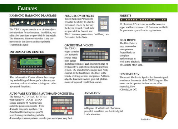 Digitale gesampelde geluiden, stereo hifi-speakers, digitale reverb, digitale ritmes, met edit-functies waren de orkest-geluiden aan te passen, afspelen van MIDI-files, MIDI-aansluitingen, floppie-drives, enz. enz.