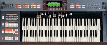 Conveniently located between the keyboards, 100 programmable registration presets (10 banks of 10) give instant recall to all of your favourite voice combinations. Many interesting and usable registrations, representing different kinds of music are factory preset, but many of you will want to reserve for your own ideas or for entering from prerecorded discs.