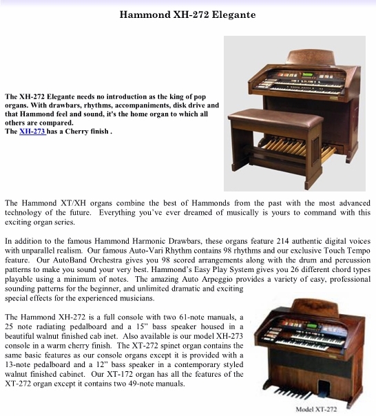 Hoewel deze instrumenten in hun actualiteit binnen de Hammond serie destijds "aan de top stonden" waren deze orgels toch wat minder imposant om het eens diplomatiek uit te drukken. Tijdens het spelen kwamen de XH en XT toch minder indrukwekkend op je over, zeker minder dan de "Good Old Elegante" ook al was deze technisch natuurlijk inmiddels wel wat achterhaald. Echter, nog steeds nemen velen graag plaats achter de echte Elegante.
