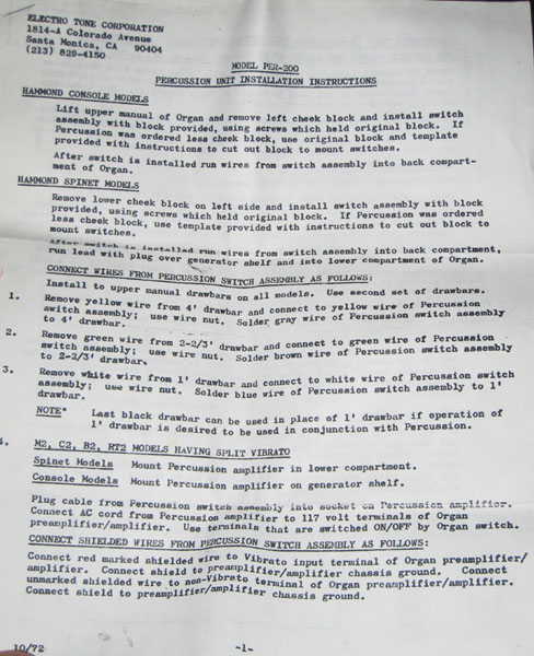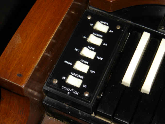 Met name voor 1955 hadden de orgels nog geen percussion en daar sprong Electro Tone handig op in met de PER 200, die hieronder staat afgebeeld.