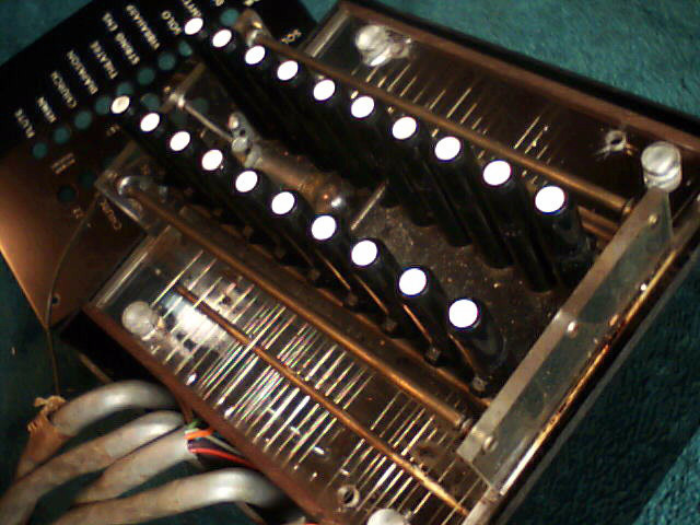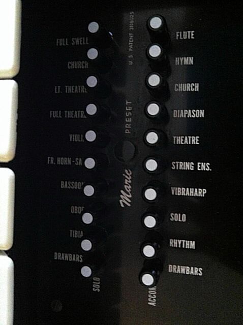 De Solo rij knoppen was uiteraard voor boven klavier, de Accom. voor het onderklavier.
