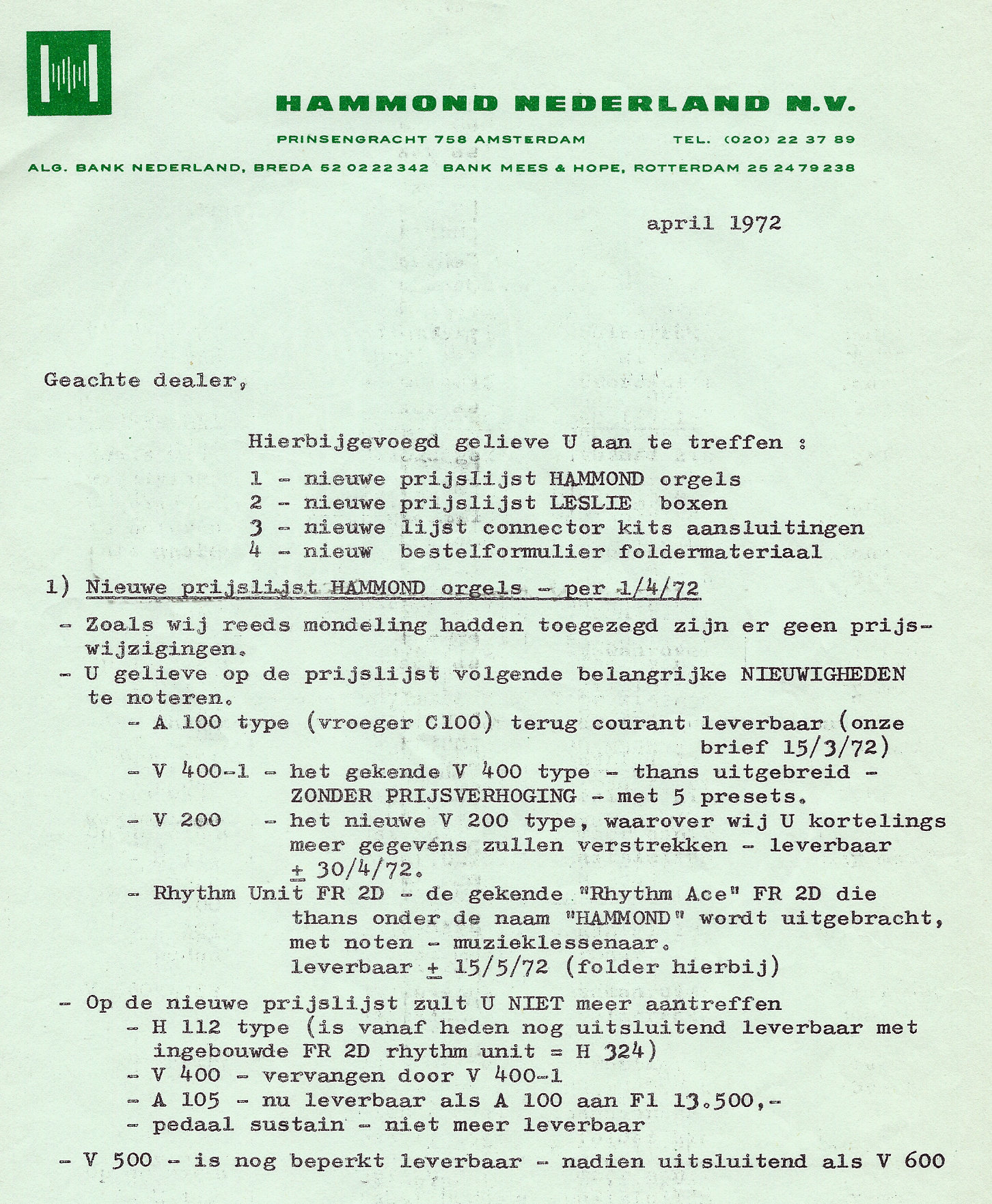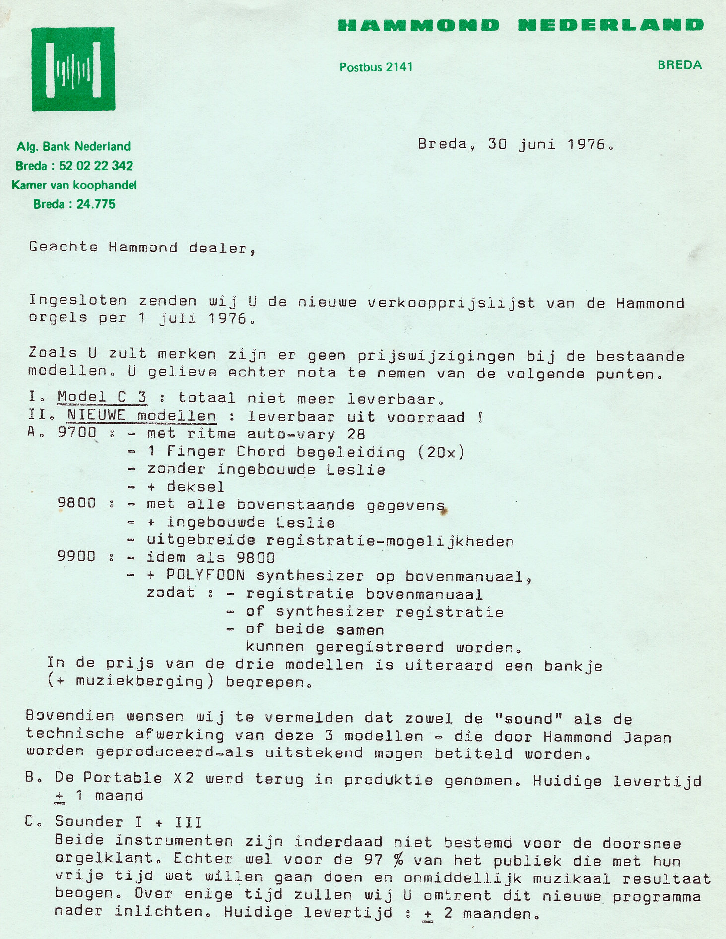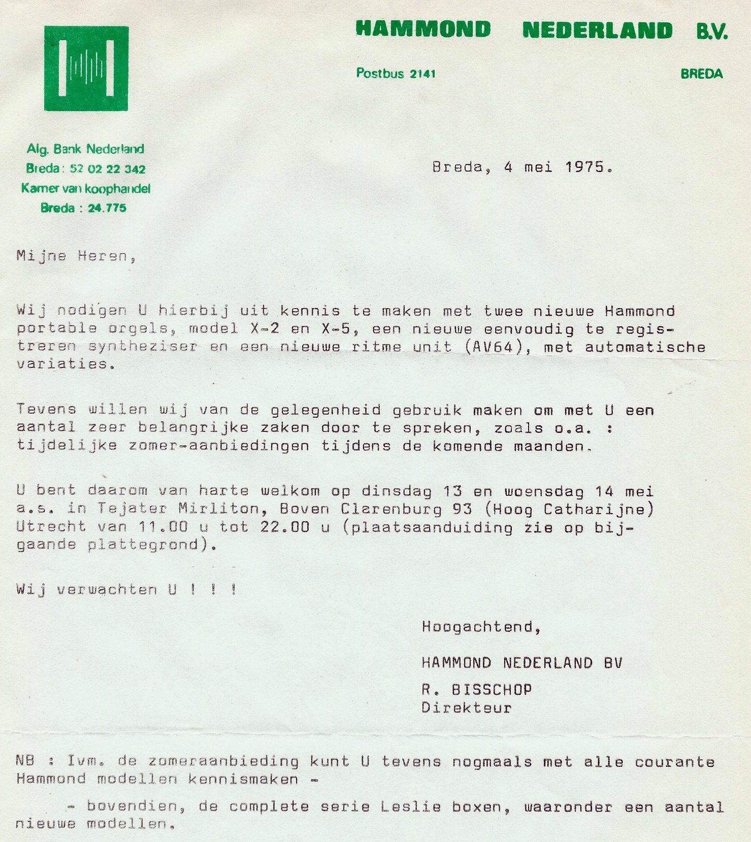 Door de jaren heen kregen de Nederlandse dealers regelmatig nieuws, tips en support van "hun" HAMMOND-importeur, uiteraard met het meest recente commerciele nieuws.