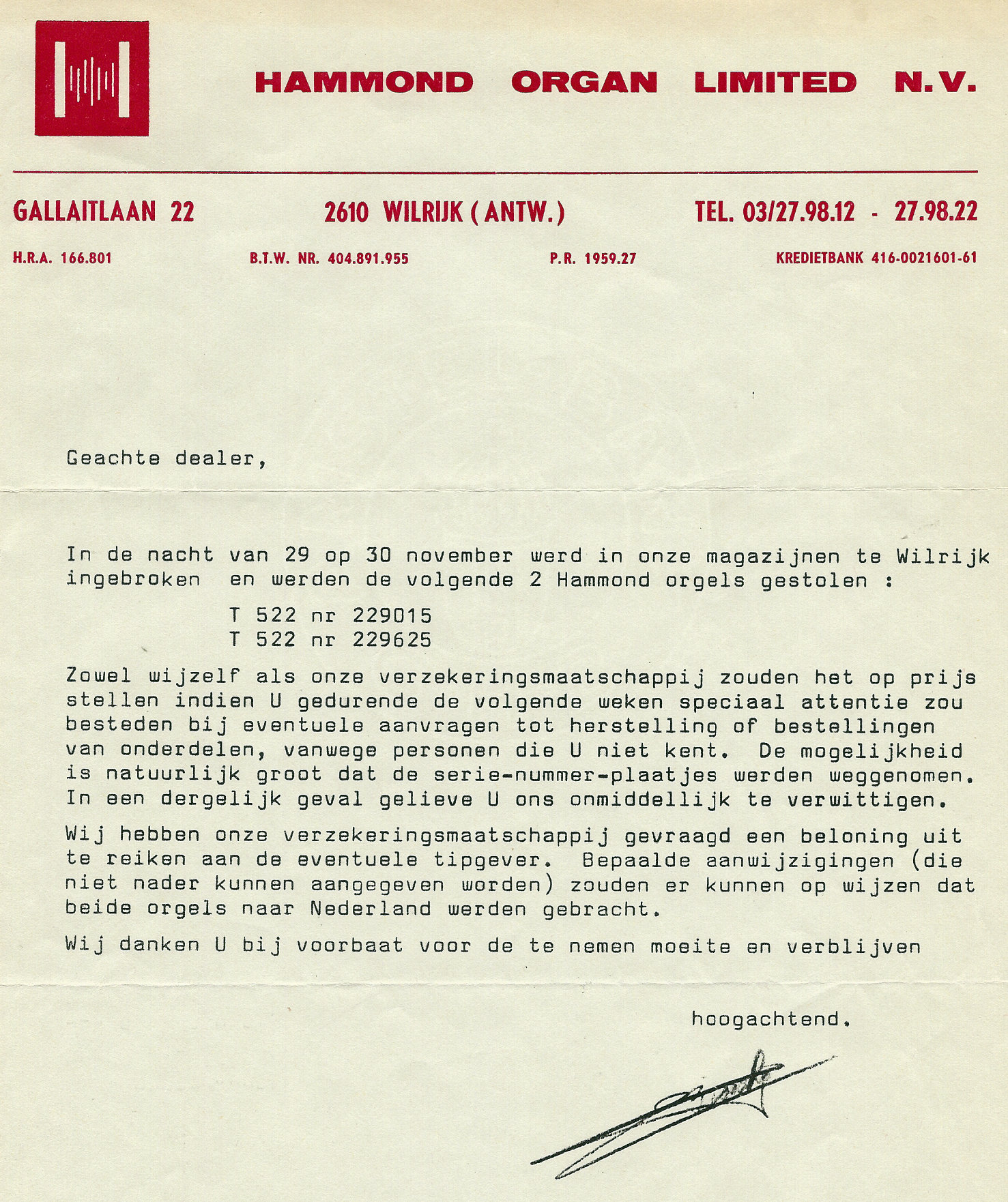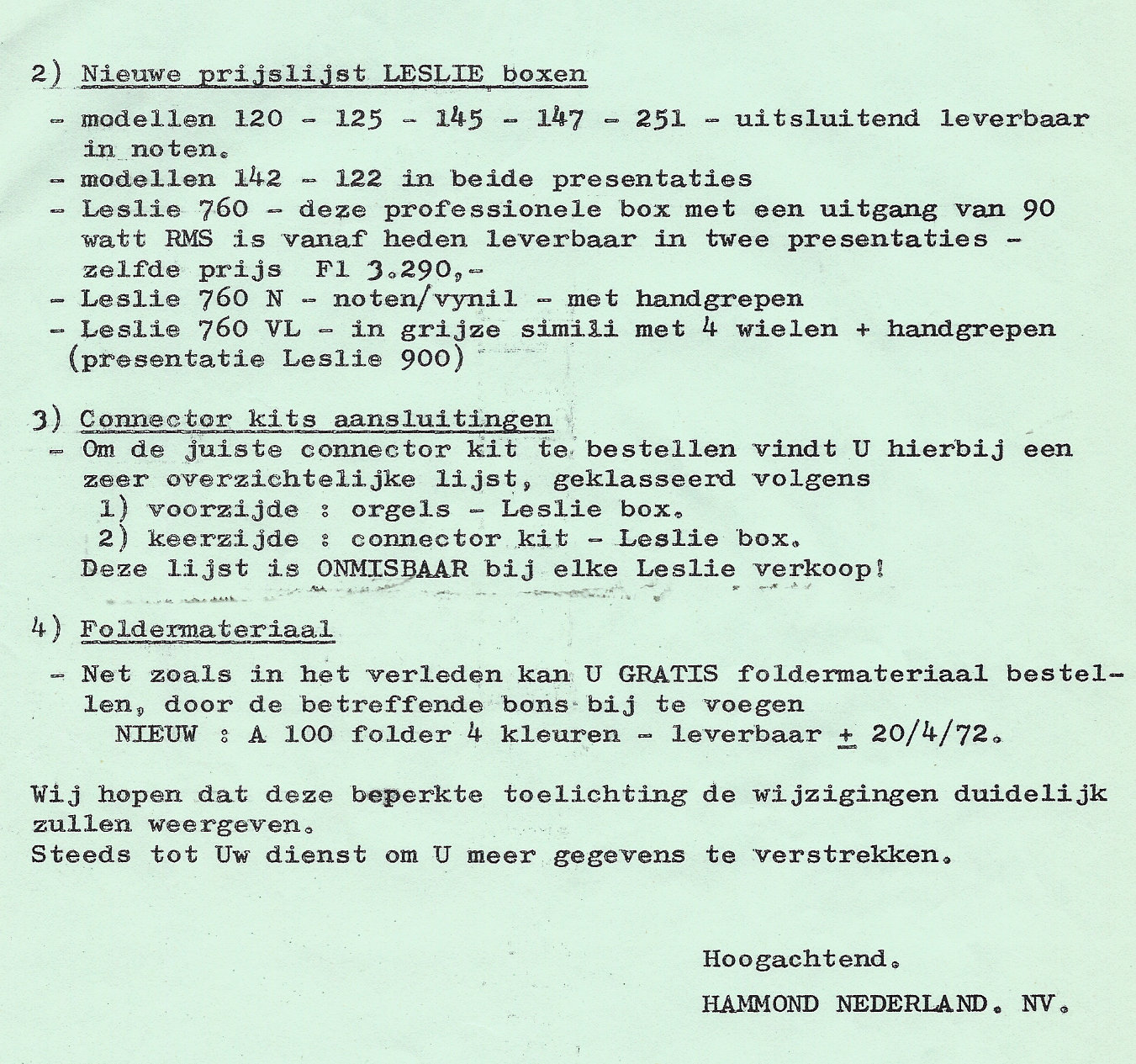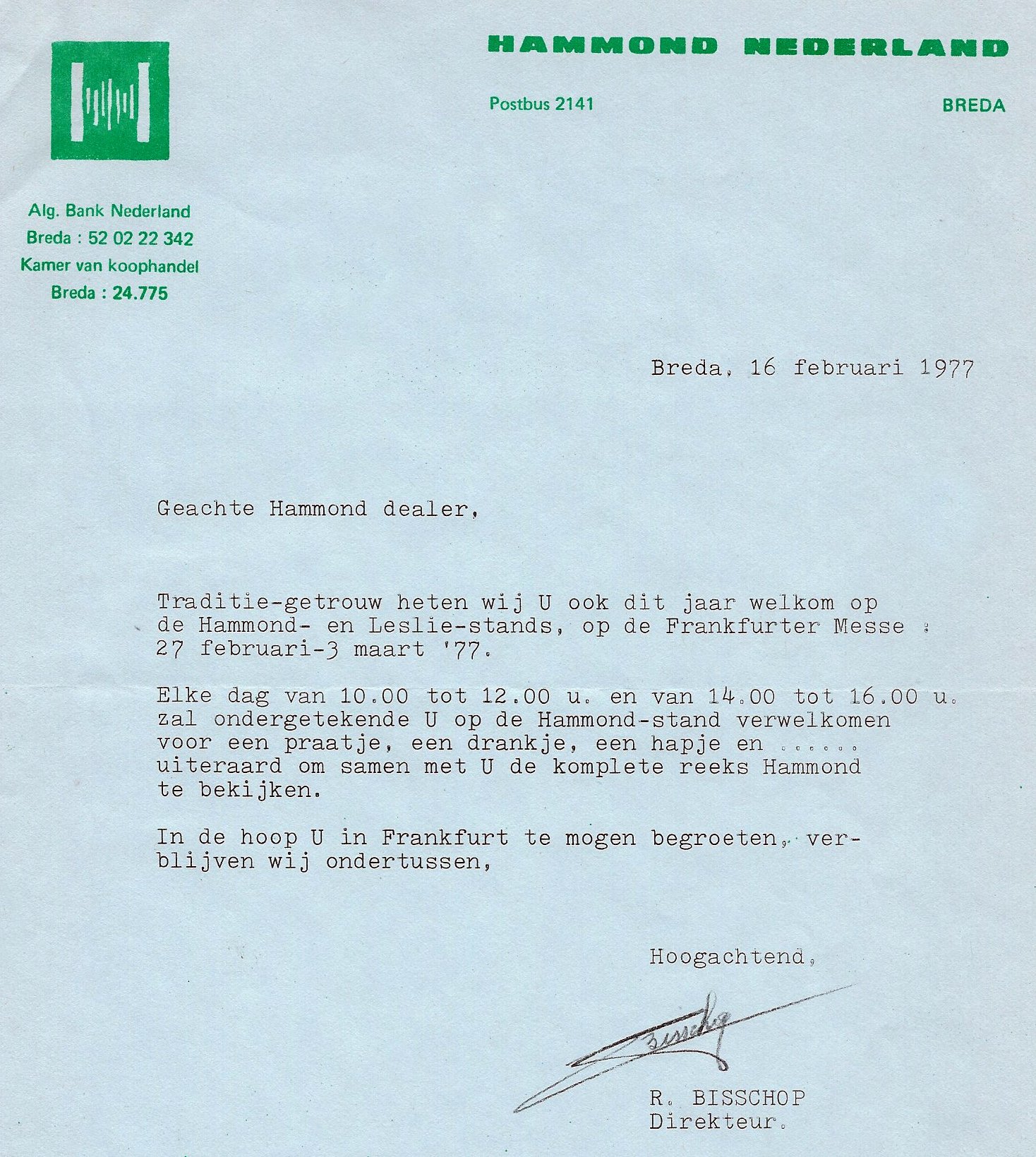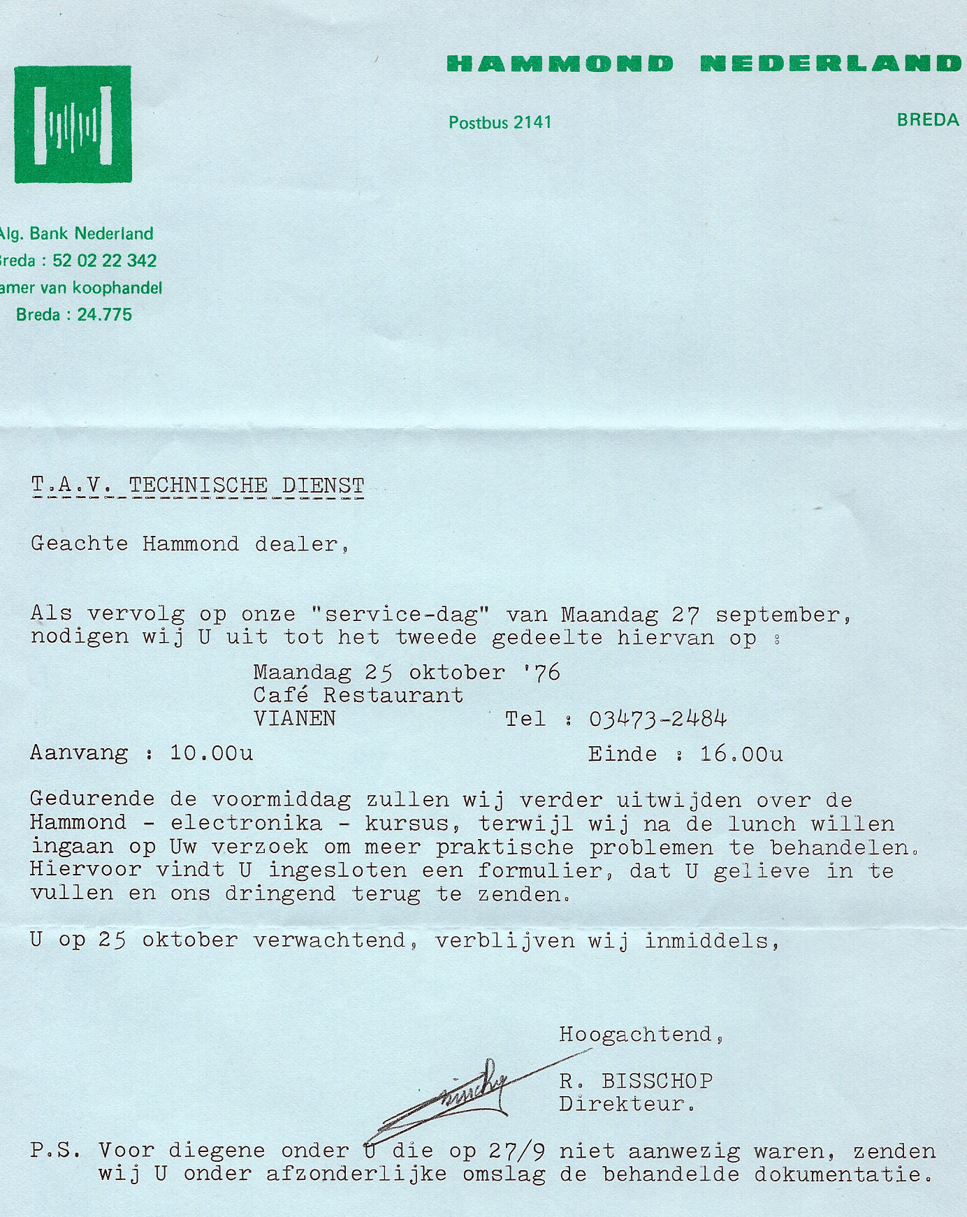 Door de jaren heen kregen de Nederlandse dealers regelmatig nieuws, tips en support van "hun" HAMMOND-importeur, uiteraard met het meest recente commerciele nieuws.