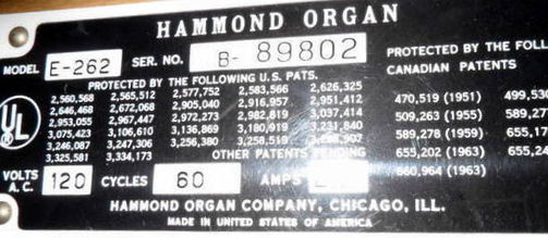 The testing of the first prototype model began in 1933 when Lahey came from his treasury division office, pulled up a bench and played Brahms’ First Symphony. Soon two organist-typists were employed to take turns playing the instrument hour after hour and day after day. News of the miraculous invention leaked out and visitors from many parts of the world dropped in at Hammond’s Western Avenue plant to listen in admiration. As winter approached, all effort was focused on perfecting the mechanism of the tone generator, the circuits, the transformer that blended the tones, the amplifier and the speaker that produced the sound of the music. Misfortune seemed once again to shadow Laurens Hammond. The treasurer’s projection indicated that the company would lose almost a quarter of a million dollars for the fiscal year 1933. By January of 1934 the time for action could be delayed no longer. Laurens Hammond packed up the "packing box prototype" organ and took it directly to the United States Patent Office in Washington D.C. There it was set up in the building’s basement. Patent office officials were more than usually attentive. They knew of the many previous attempts to build an electric organ. And they were interested in doing their utmost to push any product into production that gave even slight promise of providing jobs for workers. As the organist began to play, the rich tones filtered through the building, attracting a crowd of employees from the upper floors. It was not difficult to predict that the originality and worth of Hammond’s invention would lead to quick approval. The patent was granted, in almost record time, on April 24, 1934.