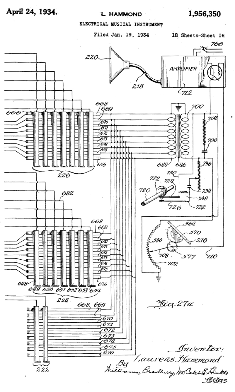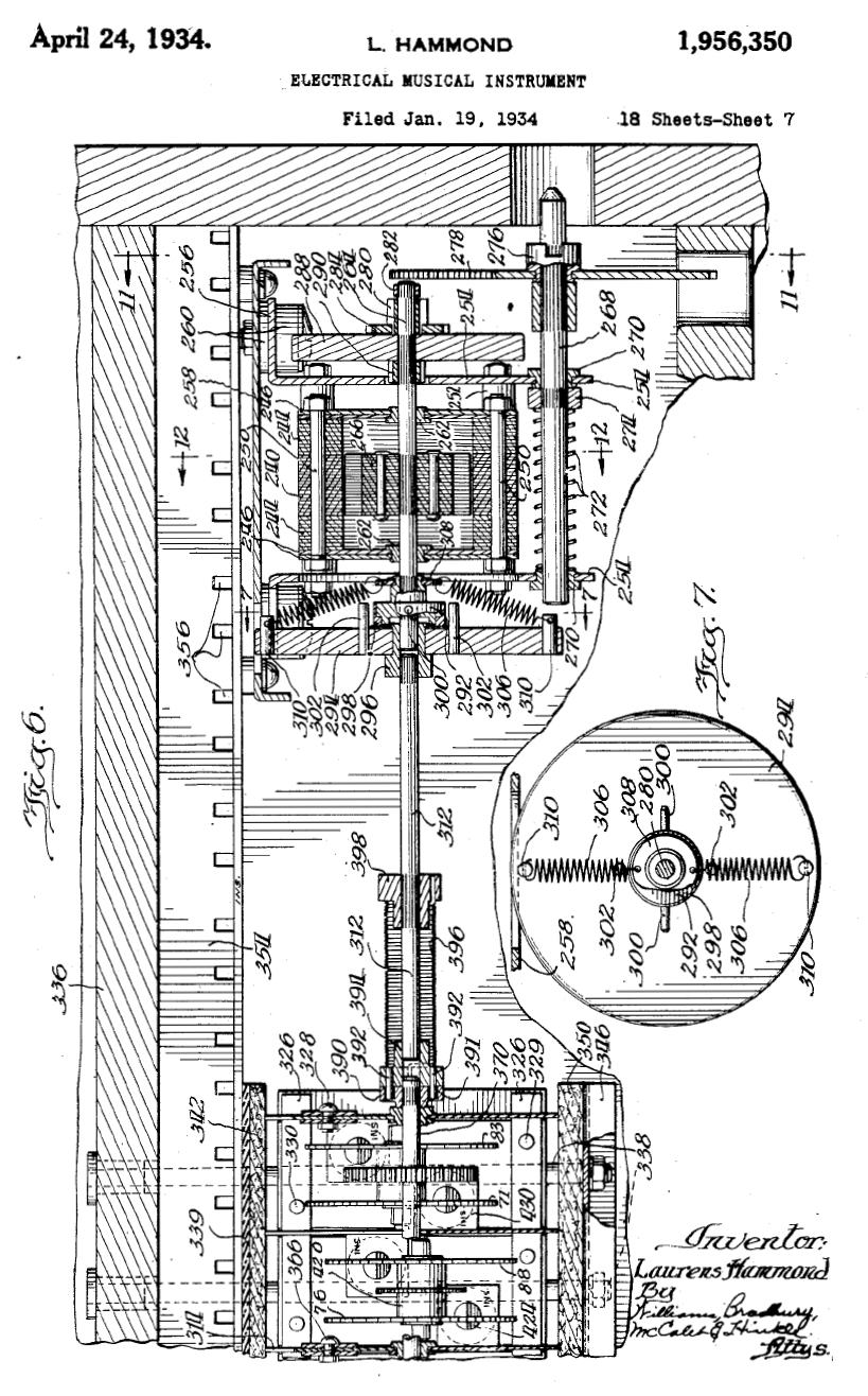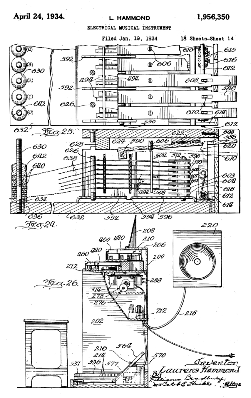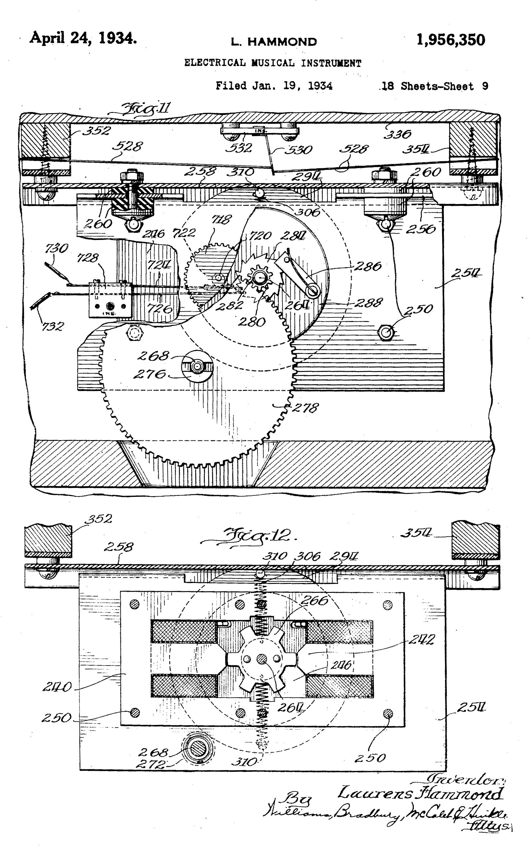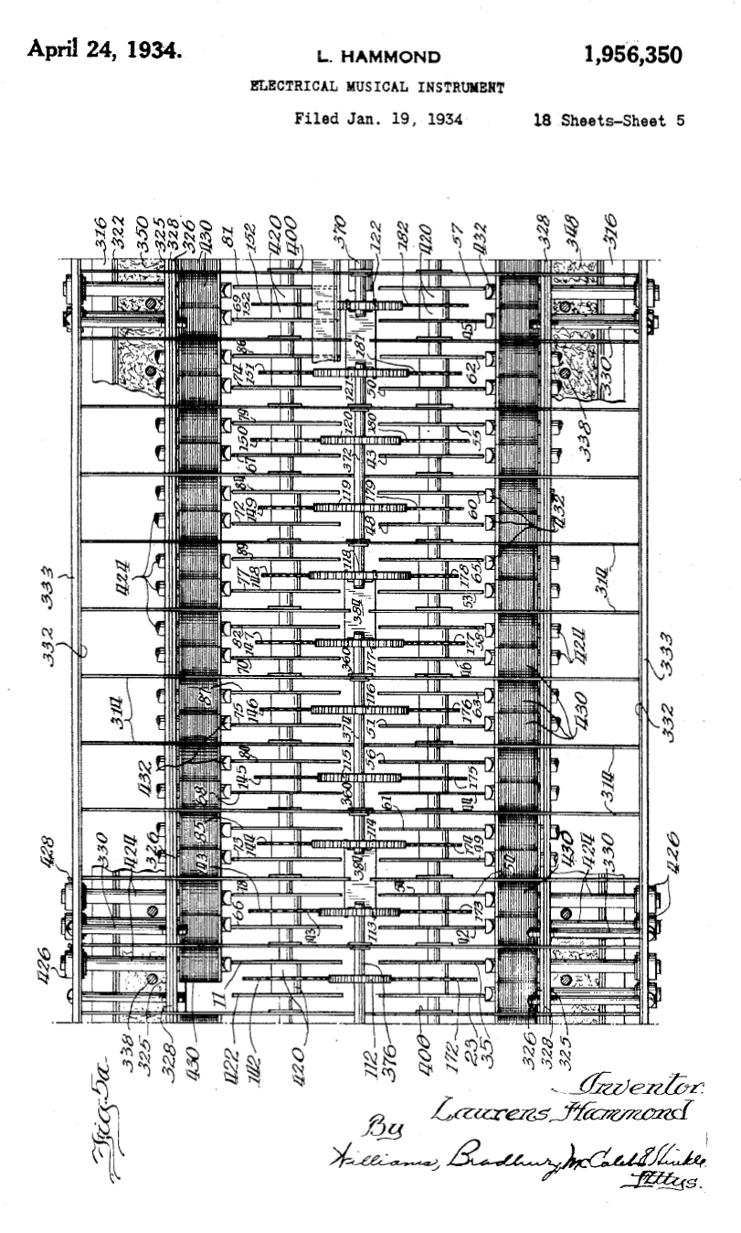 Hieronder vindt u het unieke historische document, waarmee Laurens Hammond het ontwerp, de werking en de onderdelen van zijn orgel op 19 januari 1934 inleverde bij het Amerikaanse patent bureau.