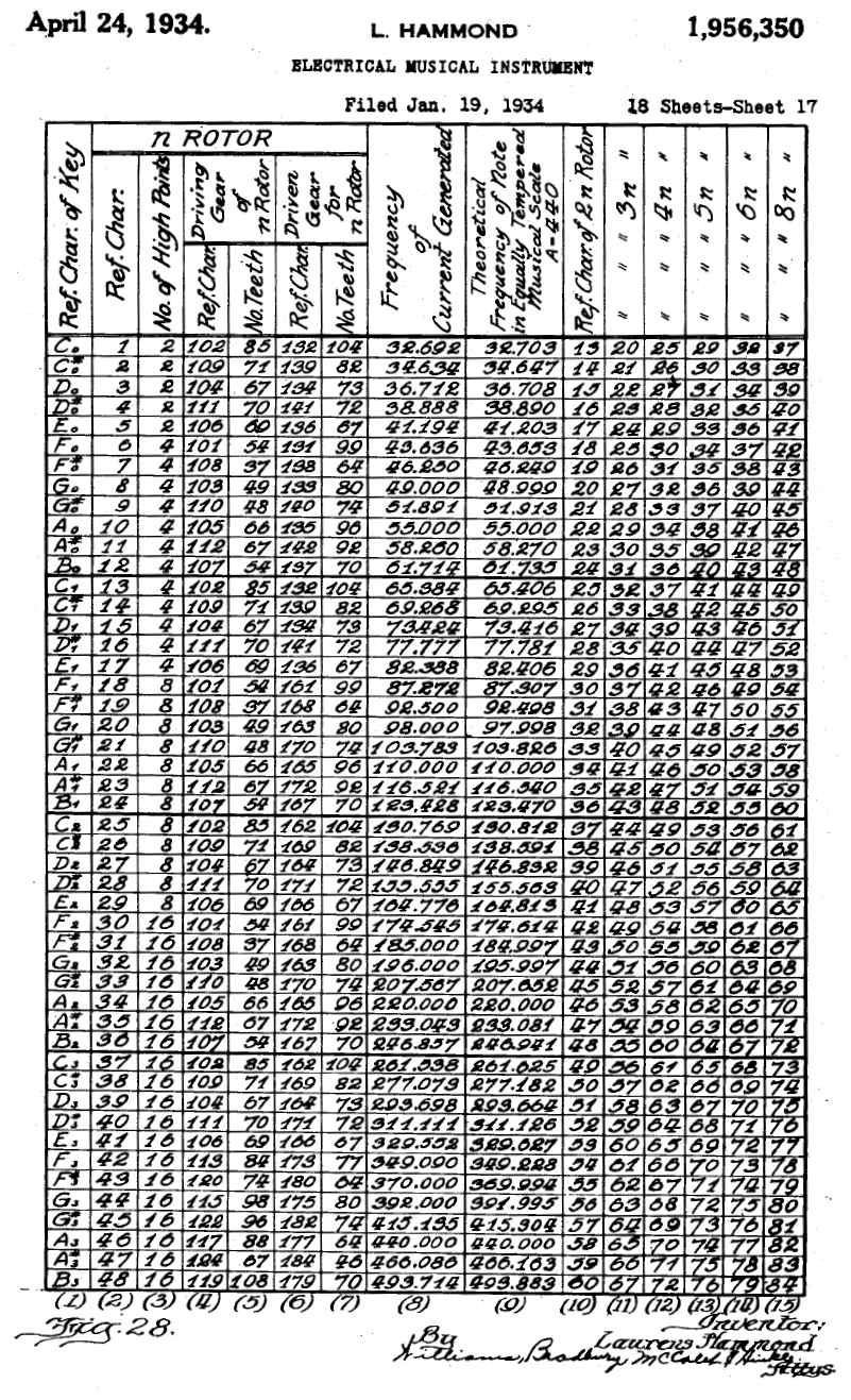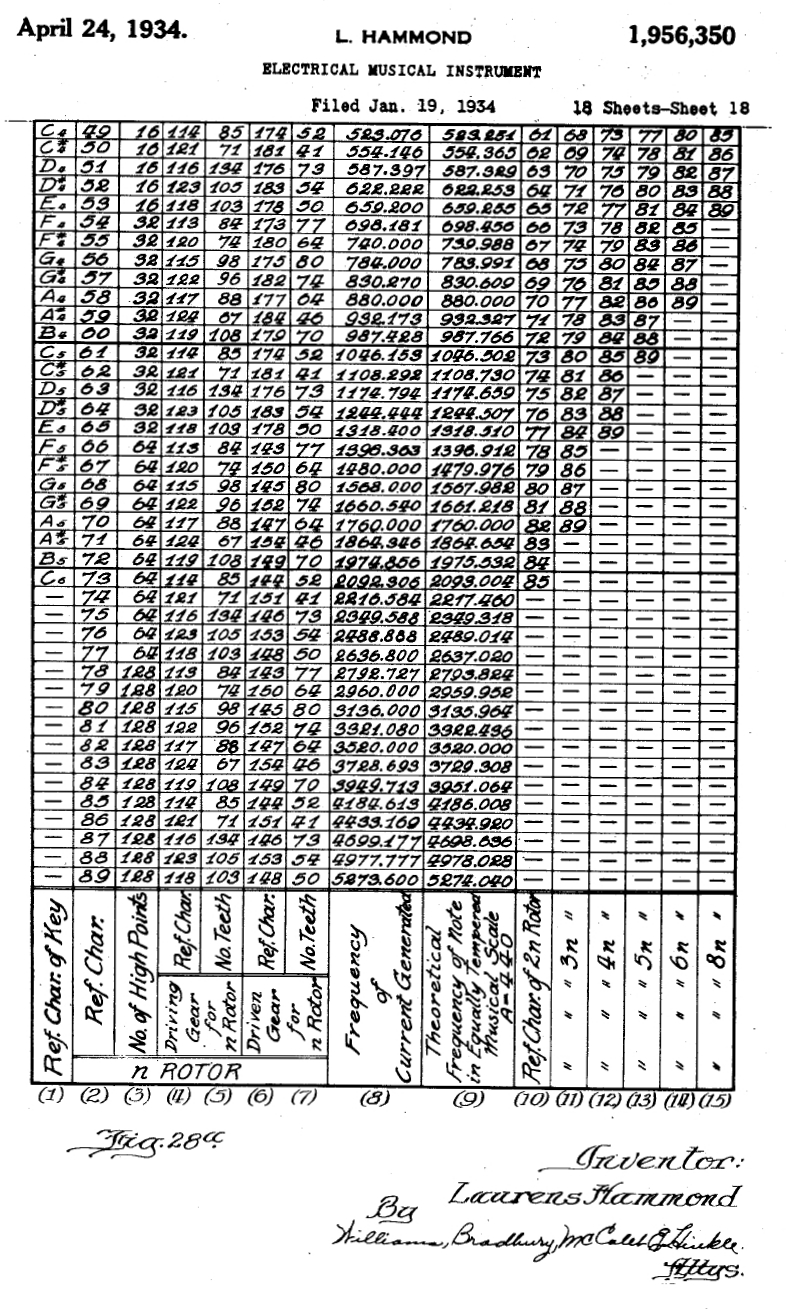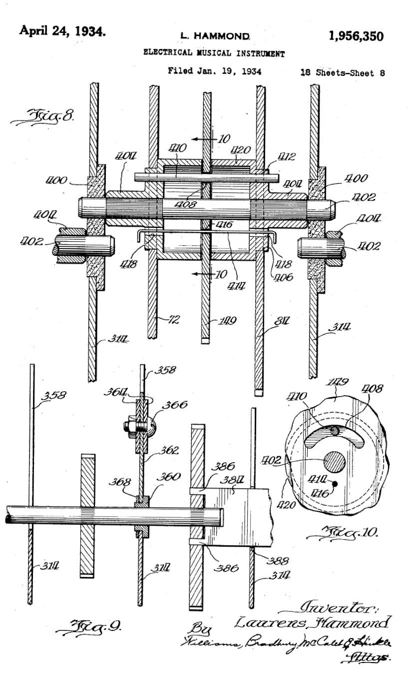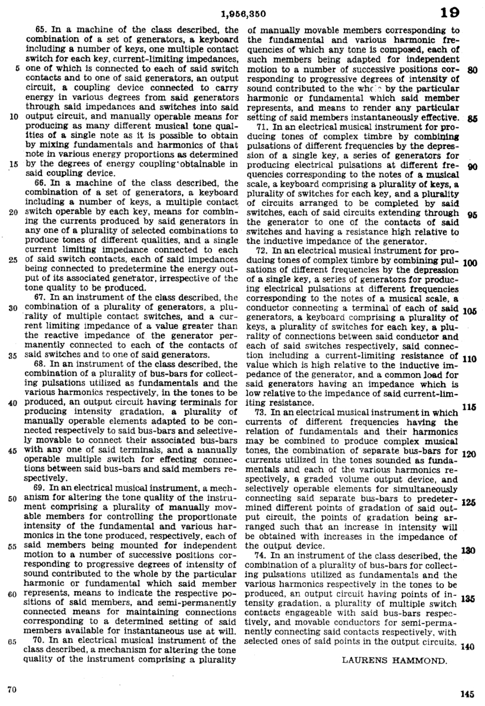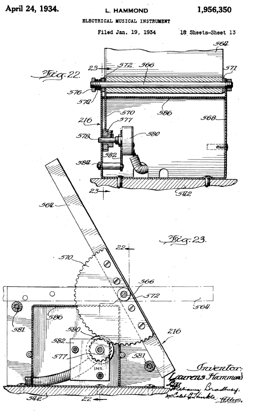 Hieronder vindt u het unieke historische document, waarmee Laurens Hammond het ontwerp, de werking en de onderdelen van zijn orgel op 19 januari 1934 inleverde bij het Amerikaanse patent bureau.