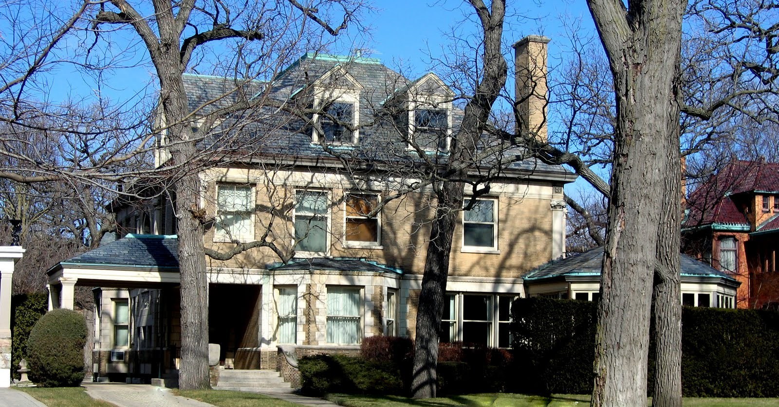 The overall appearance of the home is classical but like many of his buildings Silsbee does does not adhere to strict rules of symmetry and scale in it's design.