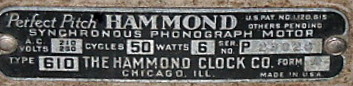 De Hammond 610 "Perfect Pitch" grammofoonmotor uit de jaren '30 is bedoeld voor gebruik in een 78-toeren grammofoon. Het toestel bevat alleen een draaitafel en een aandrijf motor. Om er een speler van te maken moet er nog een arm met element en een behuizing aan worden toegevoegd. Een synchroonmotor drijft de draaitafel direct aan, dus zonder een snaar, tand of wormwiel.