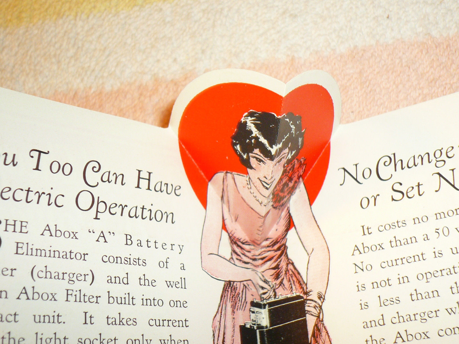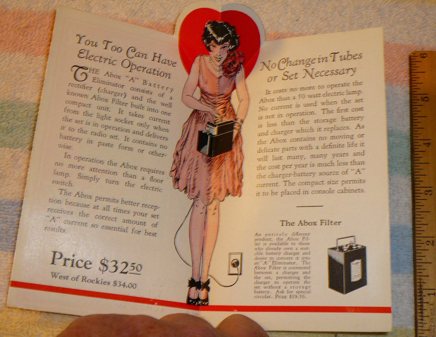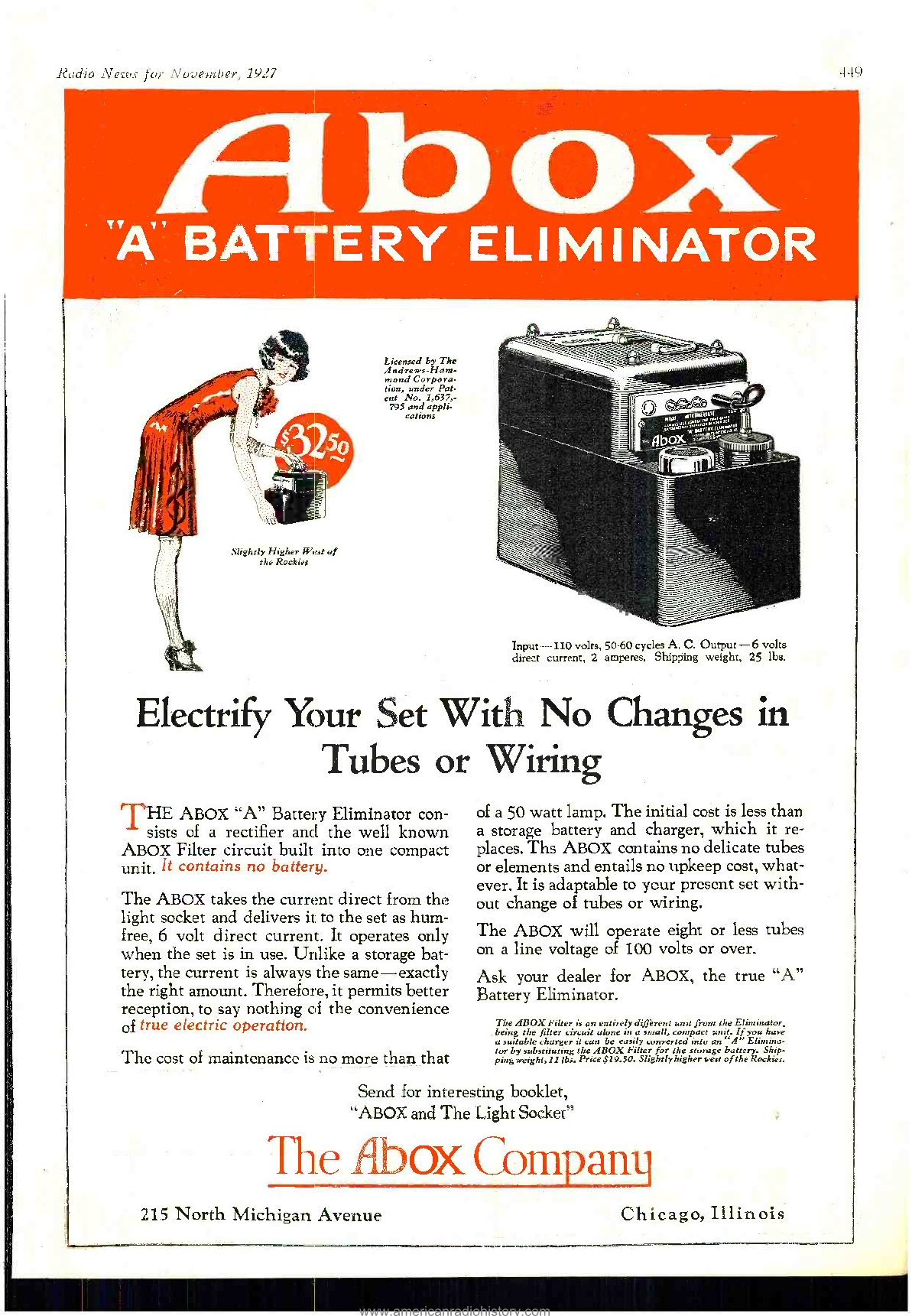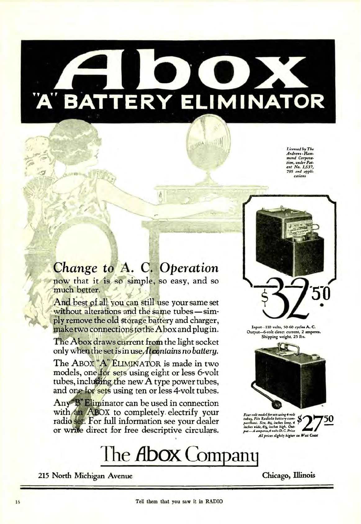 De A-Box, aangesloten op een stopcontact had twee units van zes volt waar een radio op kon draaien, in plaats van op een accu, die je steeds buiten de deur op verschillende plaatsen op kon laden.