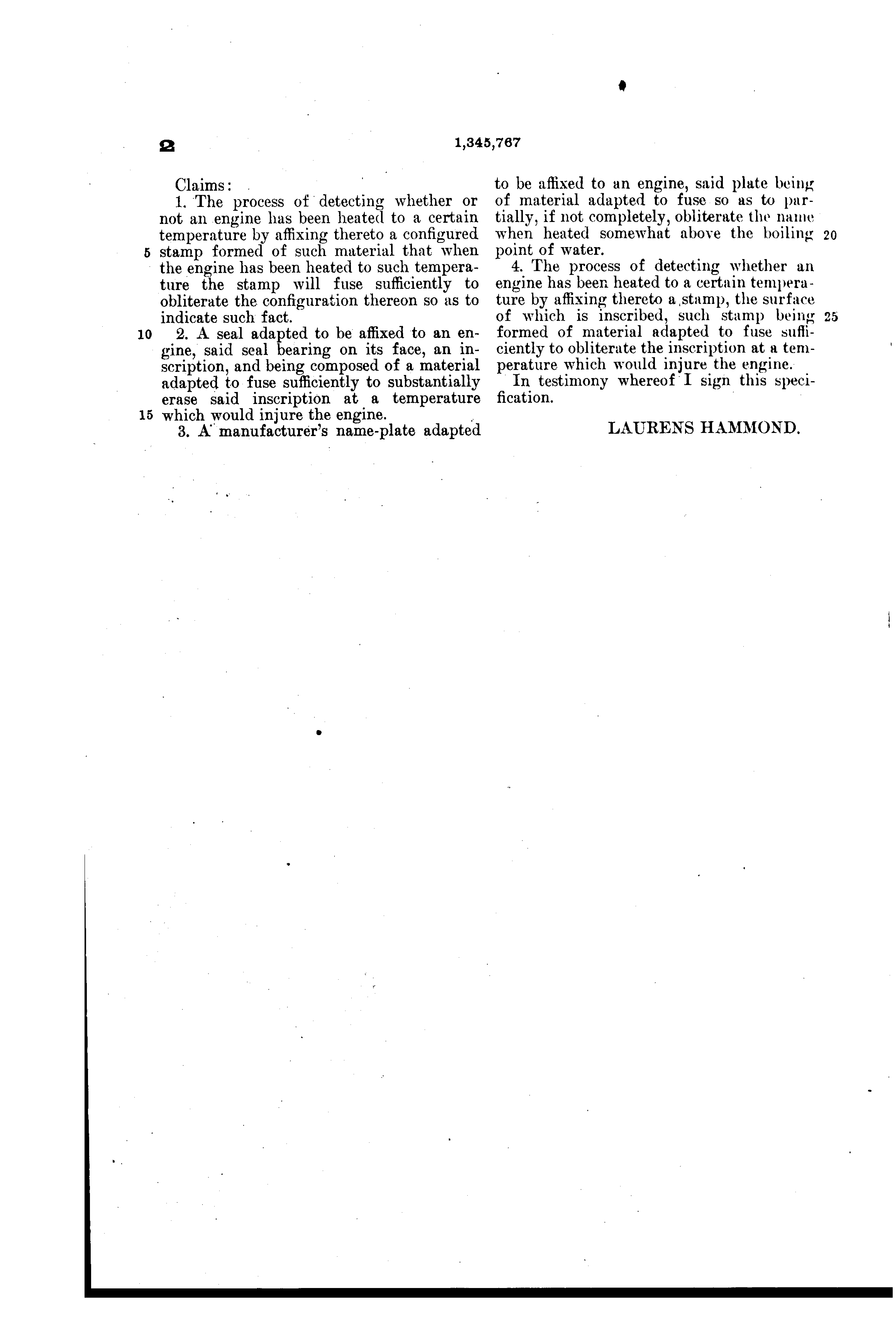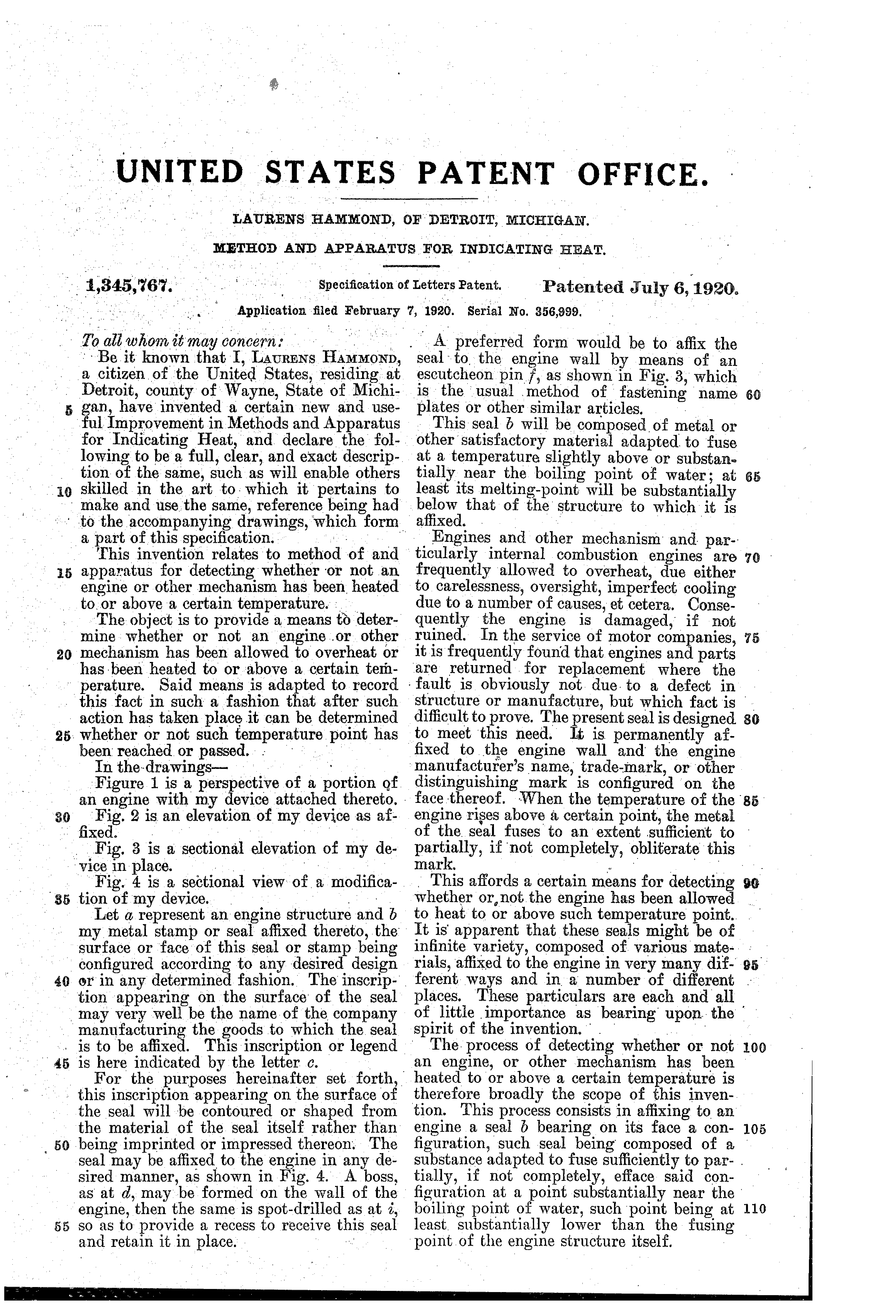 While I was with this Company, I made heat seals to detect whether motors had been overheated. Somebody runs a gasoline motor with something wrong and boils the water out. As soon as the water boils out, the engine gets really hot. It's just tragic what this does to the engine - it just ruins the engine and then the owner won't admit he overheated it. So why not make a little round seal, which has the name of the manufacturer, made of fusible alloy. You just put it in the engine by driving a pin in a little hole. Now, if the engine has been overheated, this seal wil melt and run off.