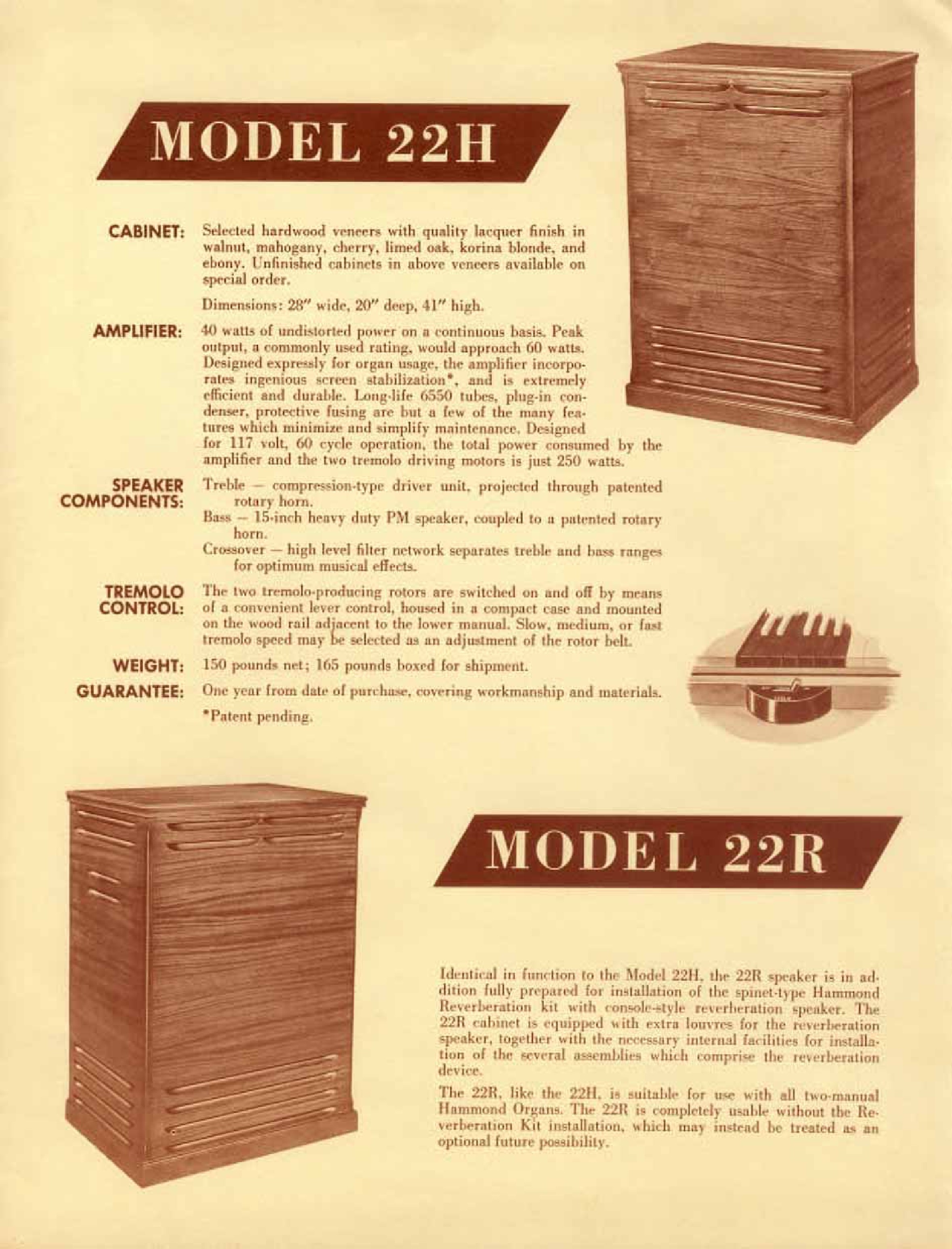 De Leslie 22 R was exact hetzelfde als model 21 H, maar kreeg als extra een Hammond ETK Reverb-kit. In het zijpaneel van de box was dan ook een extra tweetal louvres voor de galm voorzien.