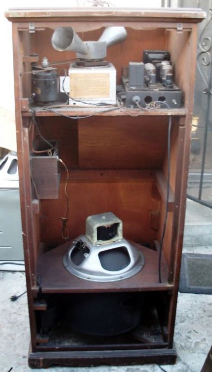 Ook had dit model nog Electro-Dynamische speakers (beide 15" speakers hadden nog geen magneten maar spoelen, die als magneten werkten en tevens als filter spoel voor de versterker-voeding werkten.