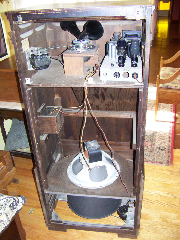 hetgeen betekent dat de 15" woofer geen permanente magneet had, zoals tegenwoordig bij speakers gebruikelijk is. Deze speaker had één grote draadspoel, die als magneet werkte en deze spoel was op zodanige manier gewonden, dat hij ook als "filter choke" diende voor de versterker-voeding.