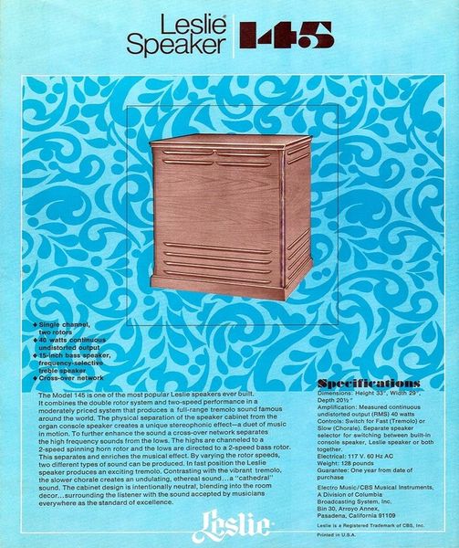 Deze Leslie is eigenlijk een 147 in een kleinere, lees minder hoge versie. Alle technische onderdelen - inclusief de versterker, zijn identiek en een op een uitwisselbaar met een 147. Omdat de klankkast wat kleiner is, heeft deze box ook wat minder "punch " dan de 147 maar dan uitsluitend in het laag.