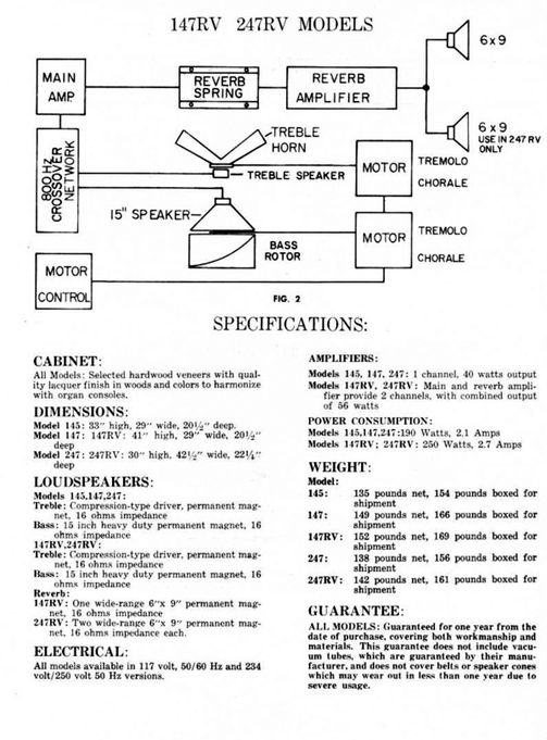 Ook de 147 RV is gelijk aan de standaard 147, echter nu is de Hammond-Reverb-Kit al standaard af fabriek ingebouwd in het bovengedeelte van de box. Zie de extra louvres in de zijkant. De delay-lijn zit in het middengedeelte.
