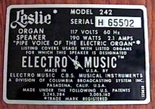 De Leslie 242 is een "Decorative" uitvoering van de 142 dus de specs zijn hetzelfde.