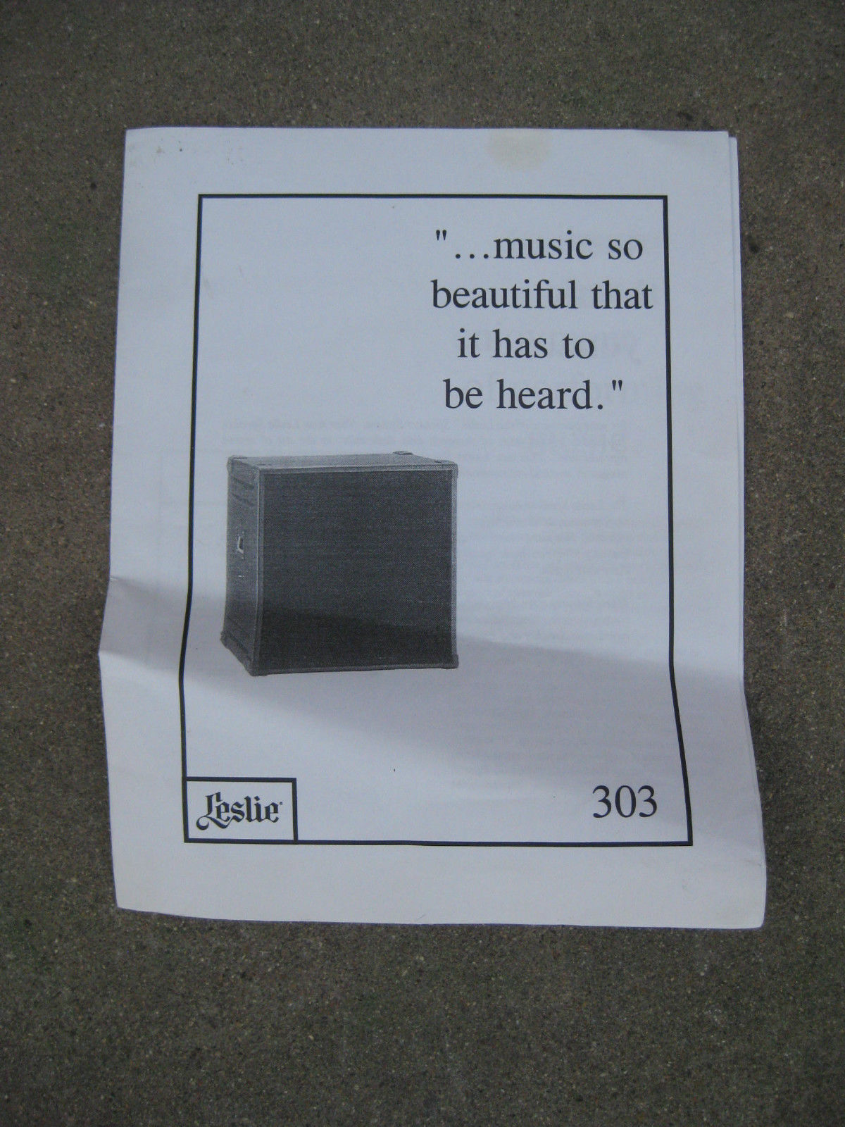 Techniisch gelijk aan Leslie 323 , maar nu in vinyl uitvoering.