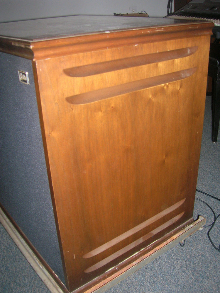 The Leslie 323 is recommended for musicians desiring a compact Leslie cabinet. 'The sound is "separated" with the highs reproduced by a horn rotor and the lows reproduced by a 12" bass speaker with electronic rotor capability. In addition, there is a stationary channel designed to accommodate the audio signal from another sound source such as a synthesizer or external sound module. This audio signal is handled by three speakers - a heavy duty 12" speaker which also handles the lower frequencies for the rotary channel, a 5" speaker for the midrange, and a Piezo tweeter for the high frequencies.
