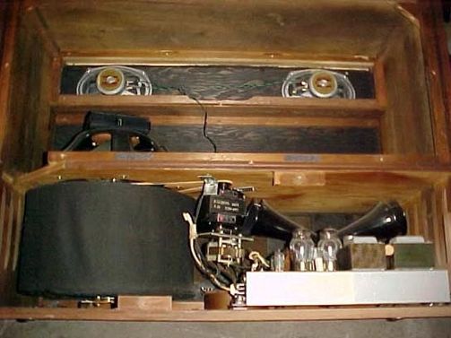 Doordat de kast zeer laag werd gehouden konden alle componenten NAAST elkaar in de kast geplaatst worden (zie foto onder)