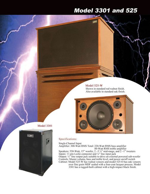 Dit nieuwe Leslie systeem biedt maar liefst een vermogen van 300 Watt RMS, opgewekt door een elektronische versterker, die opgedeeld is in een 220 Watt Bass versterker en een 80 Watt hoog-frequent versterker.
